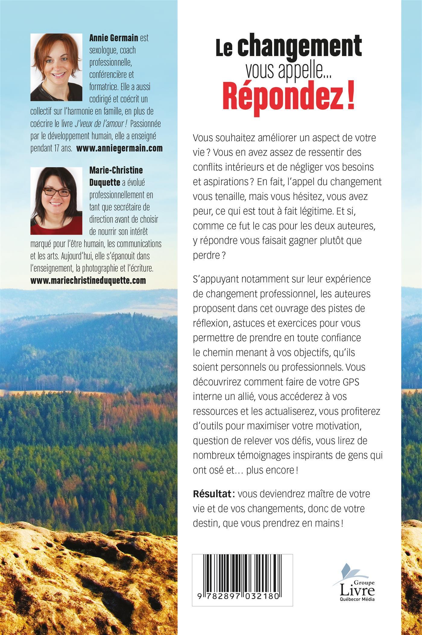 conflits intérieurs et de négliger vos besoins et aspirations? En fait, l'appel du changement vous tenaille, mais vous hésitez, vous avez peur, ce qui est tout à fait légitime. Et si, comme ce fut le cas pour les deux auteures, y répondre vous faisait gagner plutôt que perdre?