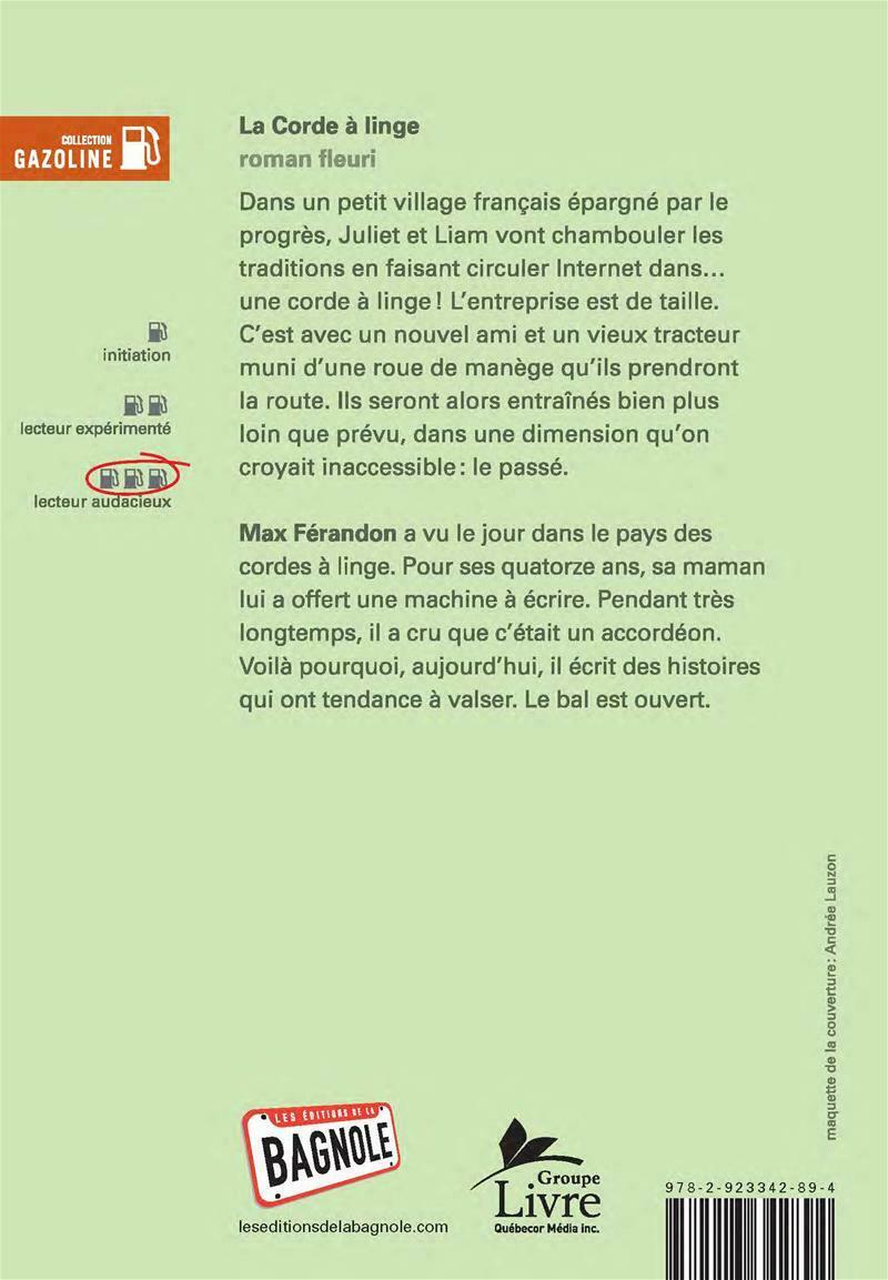 Dans un petit village français épargné par le progrès, Juliet et Liam vont chambouler les traditions en faisant circuler Internet dans... une corde à linge ! L'entreprise est de taille. C'est avec un nouvel ami et un vieux tracteur muni d'une roue de manège qu'ils prendront la route. Ils seront alors entraînés bien plus loin que prévu, dans une dimension qu'on croyait inaccessible : le passé. Le roman de Max Férandon est comme un vaste champ de fleurs sauvages, un fabuleux mélange d'espèces délicates et d'espèces robustes, déployant ses couleurs au soleil. Chaque élément du roman (lieux, paysages, personnages, action, méditations) compose ce champ incomparable.