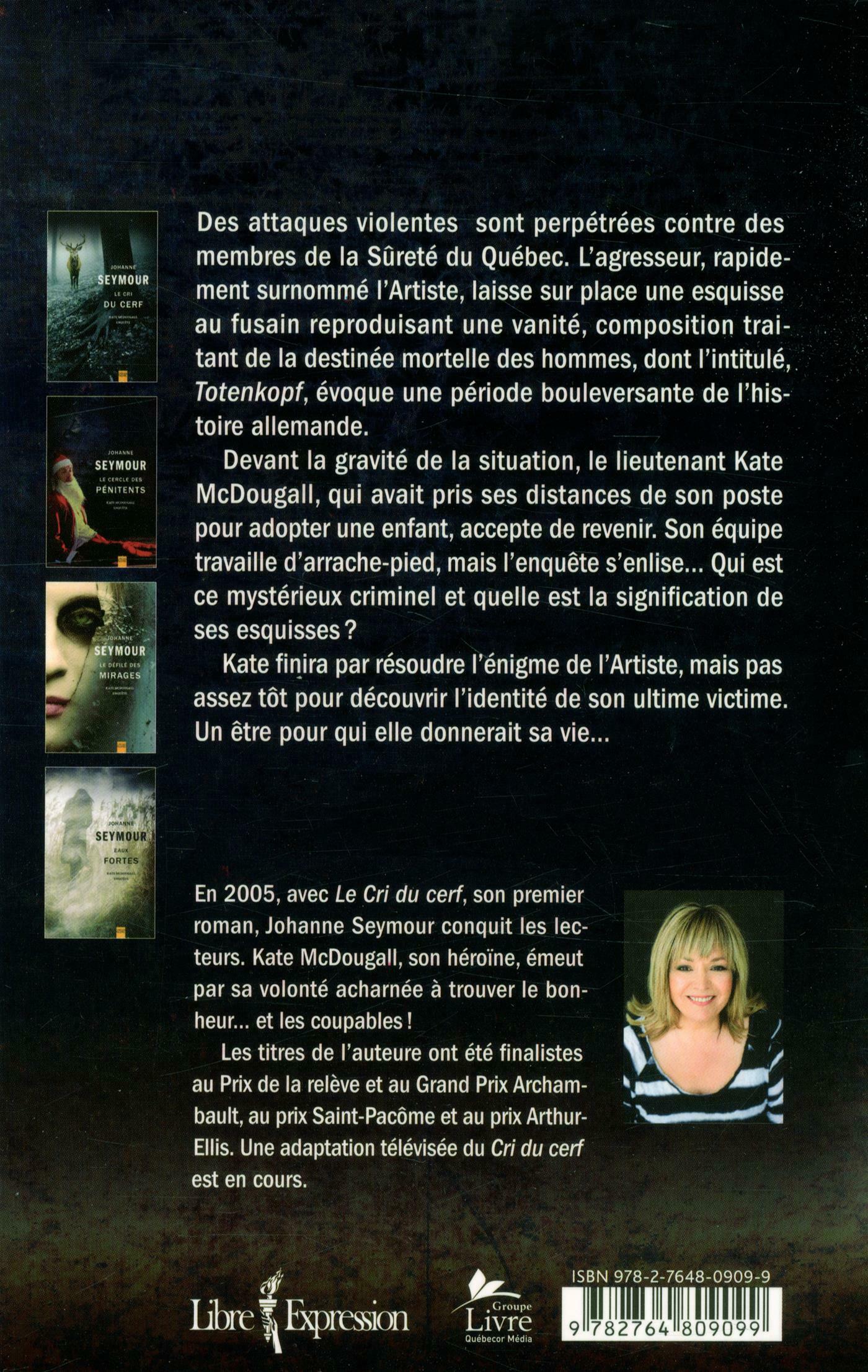 Kate McDougall a pris congé de la SQ pour adopter Élisabeth, la jeune schizophrène qu'elle a rencontrée lors de sa dernière enquête. Elle ne demeure pas non plus insensible à Sylvio Branchini, maintenant veuf. Malgré tout, ces heureux développements ne lui éviteront pas d'avoir à lutter contre ses démons. Paul Trudel, devenu un bon ami, lui demande son avis sur une série d'attaques contre des membres du corps policier dont l'auteur, surnommé l'Artiste, laisse derrière lui des esquisses au fusain. Qui est cet homme qui a énucléé un agent de la SQ et lui a, de surcroît, tatoué le fond de l'orbite ? Que représentent ces trois rangées de trois points noirs équidistants et parfaitement alignés ? Quand le sergent Timmins, un ami de Trudel retraité de la SQ, disparaît à son tour, Kate n'hésite pas à reprendre son poste.
