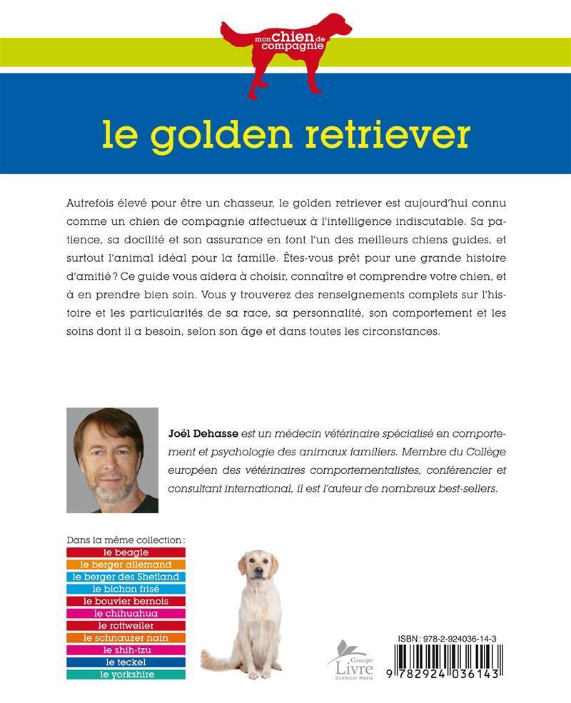 Autrefois élevé pour être un chasseur, le golden retriever est aujourd'hui connu comme un chien de compagnie affectueux à l'intelligence indiscutable. Sa patience,sa docilité et son assurance en font l'un des meilleurs chiens guides, et surtout l'animal idéal pour la famille. Êtes-vous prêt pour une grande histoire d'amitié? Ce guide vous aidera à choisir, connaître et comprendre votre chien, et à en prendre bien soin. Vous y trouverez des renseignements complets sur l'histoire et les particularités de sa race, sa personnalité, son comportement et les soins dont il a besoin, selon son âge et dans toutes les circonstances.