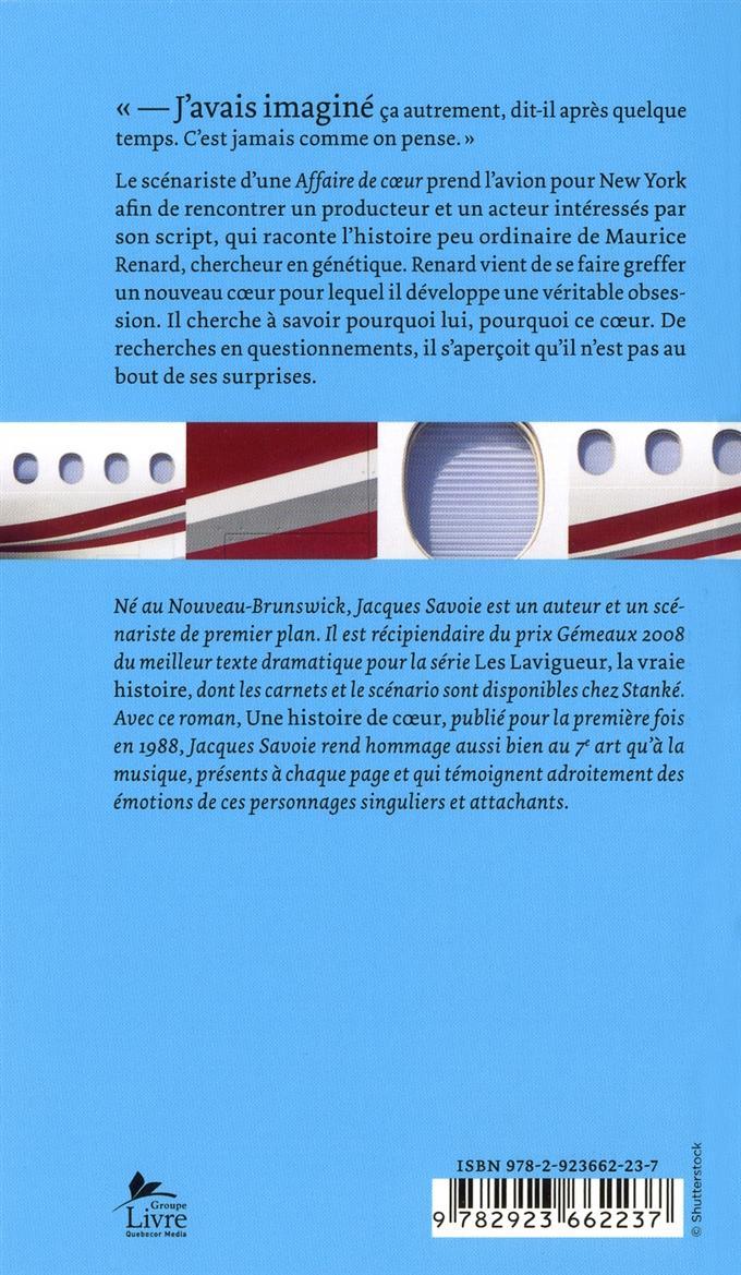 Le narrateur prend l’avion pour New York pour aller y rencontrer un producteur intéressé par son dernier scénario. Pendant le voyage, il se remémore cette Affaire de cœur, si peu ordinaire. En effet, Maurice Renard, chercheur en génétique, vient de se faire greffer un nouveau cœur, à propos duquel il développe une véritable obsession. Il cherche à savoir pourquoi lui, pourquoi ce cœur. Il retrouve ainsi la famille du donneur et se prend d’affection pour le jeune frère de ce dernier. Cette obsession n’est pas pour plaire à sa femme, musicienne, de treize ans sa cadette, et qui est en répétition pour le concert de sa carrière. De recherches en questionnements, Maurice Renard n’est pas au bout de ses surprises. L’histoire se poursuit lorsque le narrateur rencontre le producteur, et surtout John Bernstein, ancienne vedette de second plan, tout imprégné du personnage de Maurice Renard. Il pense avoir enfin trouvé le rôle de sa vie, à condition de réécrire en partie le scénario ! Et pour en convaincre l’auteur, le comédien l’emmènera aussi loin que l’île Hope, perdue entre la mer du Groenland et celle de Barents.