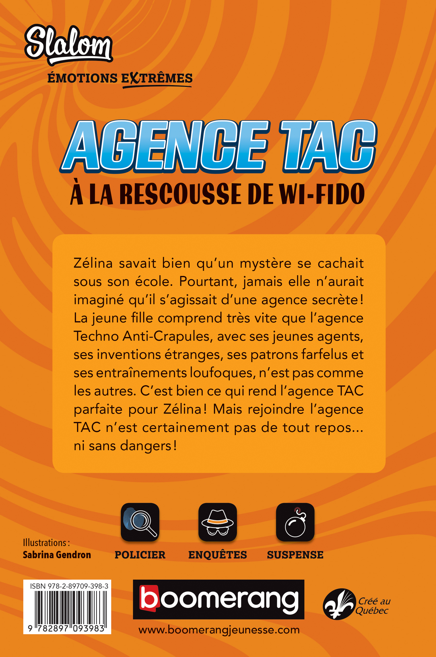 Zélina savait bien qu’un mystère se cachait sous son école. Pourtant, jamais elle n’aurait imaginé qu’il s’agissait d’une agence secrète ! La jeune fille comprend très vite que l’agence Techno Anti-Crapules, avec ses jeunes agents, ses inventions étranges, ses patrons farfelus et ses entraînements loufoques, n’est pas comme les autres. C’est bien ce qui rend l’agence TAC parfaite pour Zélina ! Mais rejoindre l’agence TAC n’est certainement pas de tout repos… ni sans dangers !