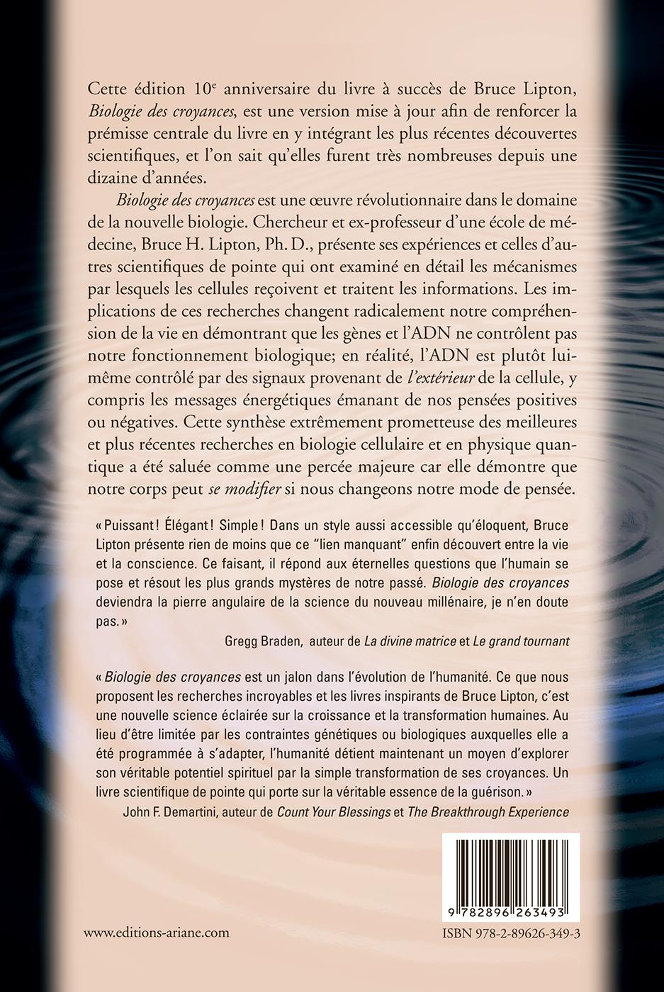 Cette édition 10e anniversaire du livre à succès de Bruce Lipton, Biologie des croyances, est une version mise à jour afin de renforcer la prémisse centrale du livre en y intégrant les plus récentes découvertes scientifiques, et l’on sait qu’elles furent très nombreuses depuis une dizaine d’années.Biologie des croyances est une œuvre révolutionnaire dans le domaine de la nouvelle biologie. Chercheur et ex-professeur d’une école de médecine, Bruce H. Lipton, Ph. D., présente ses expériences et celles d’autres scientifiques de pointe qui ont examiné en détail les mécanismes par lesquels les cellules reçoivent et traitent les informations. Les implications de ces recherches changent radicalement notre compréhension de la vie en démontrant que les gènes et l’ADN ne contrôlent pas notre fonctionnement biologique; en réalité, l’ADN est plutôt lui-même contrôlé par des signaux provenant de l’extérieur de la cellule, y compris les messages énergétiques émanant de nos pensées positives ou négatives. Cette synthèse extrêmement prometteuse des meilleures et plus récentes recherches en biologie cellulaire et en physique quantique a été saluée comme une percée majeure car elle démontre que notre corps peut se modifier si nous changeons notre mode de pensée.