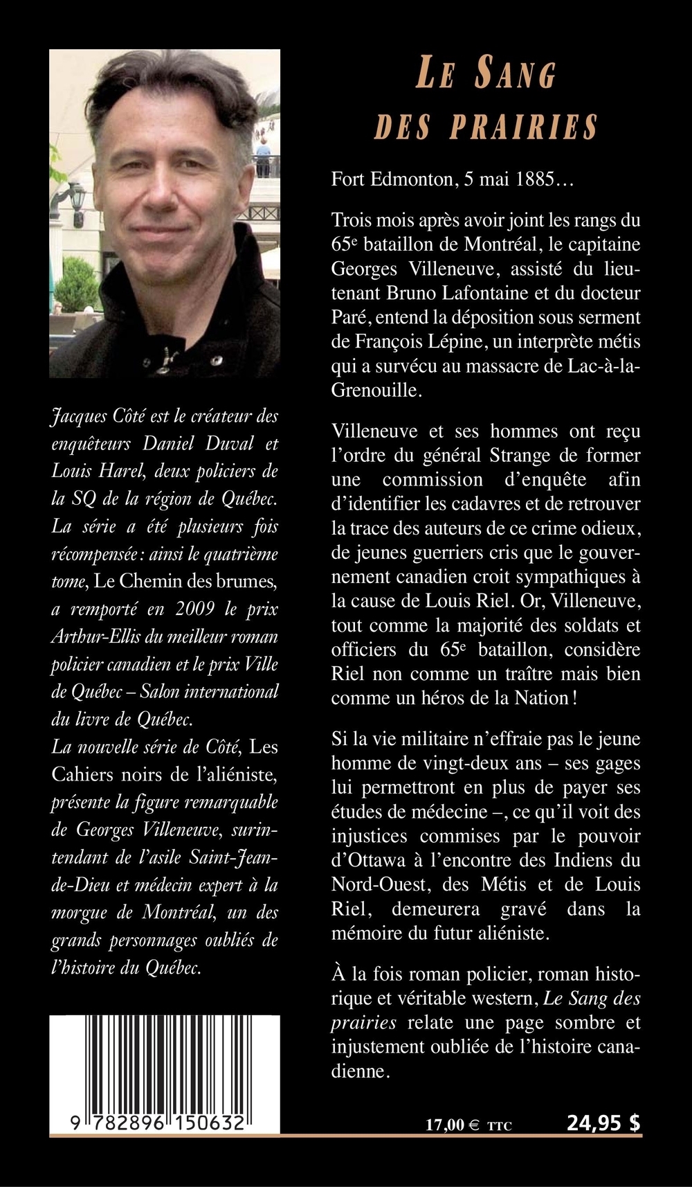 Fort Edmonton, 5 mai 1885… Trois mois après avoir joint les rangs du 65e bataillon de Montréal, le capitaine Georges Villeneuve, assisté du lieutenant Bruno Lafontaine et du docteur Paré, entend la déposition sous serment de François Lépine, un interprète métis qui a survécu au massacre de Lac-à-la-Grenouille.Villeneuve et ses hommes ont reçu l’ordre du général Strange de former une commission d’enquête afin d’identifier les cadavres et de retrouver la trace des auteurs de ce crime odieux, de jeunes guerriers cris que le gouvernement canadien croit sympathiques à la cause de Louis Riel. Or, Villeneuve, tout comme la majorité des soldats et officiers du 65e bataillon, considère Riel non comme un traître mais bien comme un héros de la Nation ! Si la vie militaire n’effraie pas le jeune homme de vingt-deux ans – ses gages lui permettront en plus de payer ses études de médecine –, ce qu’il voit des injustices commises par le pouvoir d’Ottawa à l’encontre des Indiens du Nord-Ouest, des Métis et de Louis Riel, demeurera gravé dans la mémoire du futur aliéniste. À la fois roman policier, roman historique et véritable western, Le Sang des prairies relate une page sombre et injustement oubliée de l’histoire canadienne.