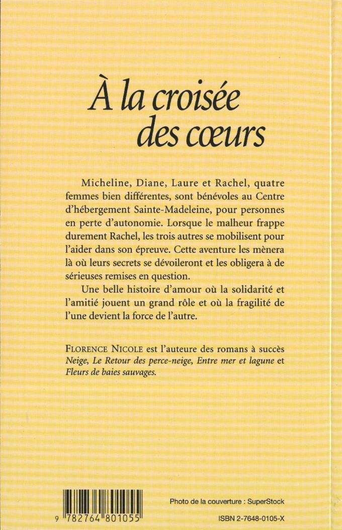 À la croisée des cœurs est un roman où se côtoient l’amour, l’amitié, l’entraide, et dans lequel de profondes remises en question obligent des êtres attachants à changer ce qui peut l’être et à accepter ce qui échappe à leur pouvoir en attendant que la vie se charge de faire son œuvre de guérison. Ce livre apporte un éclairage sur les effets dévastateurs du rejet, sur les bienfaits que procure le pardon et sur la difficulté d’oublier les blessures passées. Il s’agit surtout d’une œuvre qui ouvre la porte à l’espoir, car, comme il nous arrive de le constater, la vie s’amuse parfois à provoquer de surprenants revirements.