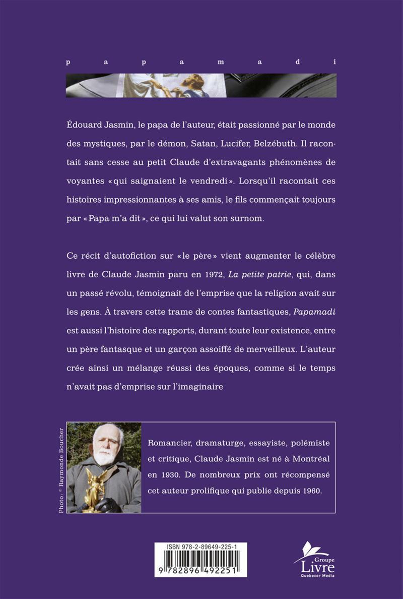 Ce récit d'autofiction sur «le père» vient augmenter le célèbre livre de Claude Jasmin paru en 1972, La petite patrie, qui, dans un passé révolu, témoignait de l'emprise que la religion avait sur les gens. À travers cette trame de contes fantastiques, Papamadi est aussi l'histoire des rapports, durant toute leur existence, entre un père fantasque et un garçon assoiffé de merveilleux. L'auteur crée ainsi un mélange réussi des époques, comme si le temps n'avait pas d'emprise sur l'imaginaire.