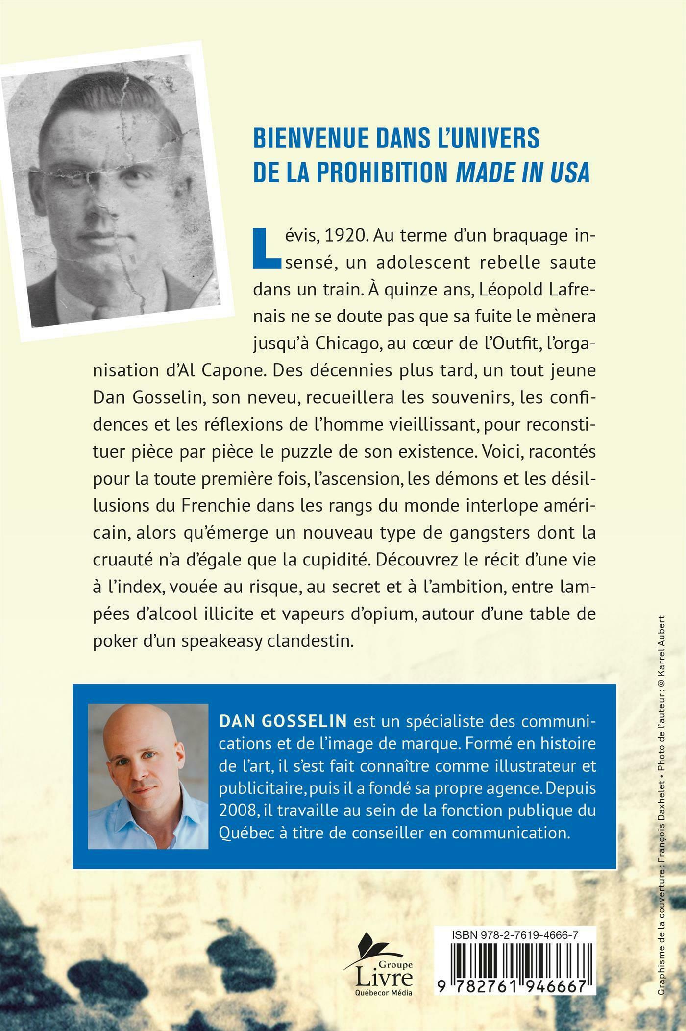 .Des décennies plus tard, un tout jeune Dan Gosselin, son neveu, recueillera les souvenirs, les confidences et les réflexions de l'homme vieillissant, pour reconstituer pièce par pièce le puzzle de son existence. Voici, racontés pour la toute première fois, l'ascension, les démons et les désillusions du Frenchie dans les rangs du monde interlope américain, alors qu'émerge un nouveau type de gangsters dont la cruauté n'a d'égale que la cupidité.