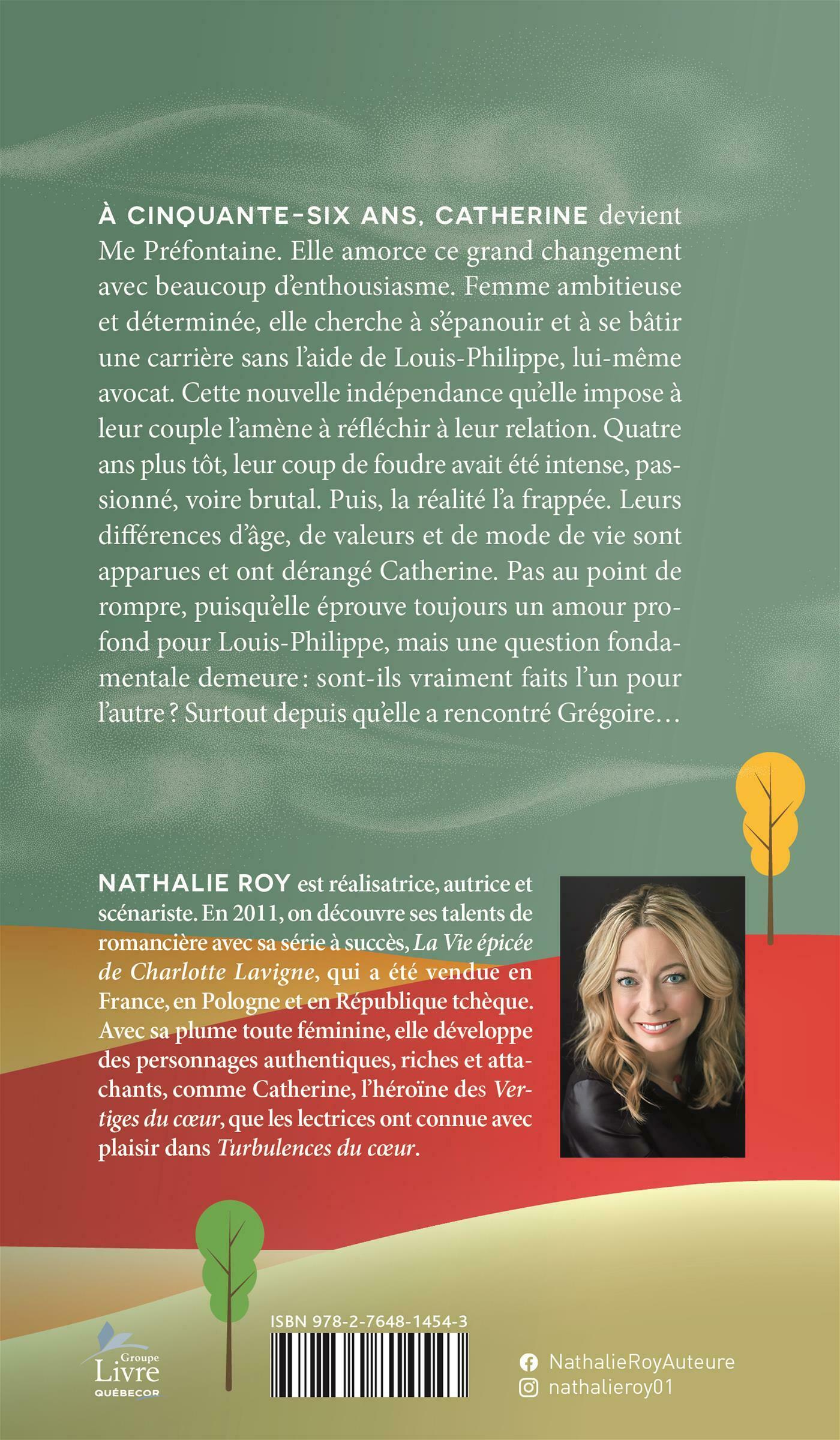 À cinquante-six ans, Catherine devient Me Préfontaine. Elle amorce ce grand changement avec beaucoup d'enthousiasme. Femme ambitieuse et déterminée, elle cherche à s'épanouir et à se bâtir une carrière sans l'aide de Louis-Philippe, lui-même avocat. Cette nouvelle indépendance qu'elle impose à leur couple l'amène à réfléchir à leur relation. Quatre ans plus tôt, leur coup de foudre avec été intense, passionné, voire brutal. Puis, la réalité l'a frappée. Leurs différences d'âge, de valeurs et de mode de vie sont apparues et ont dérangé Catherine. Pas au point de rompre, puisqu'elle éprouve toujours un amour profond pour Louis-Philippe, mais une question fondamentale demeure : sont-ils vraiment faits l'un pour l'autre ? Surtout depuis qu'elle a rencontré Grégoire...