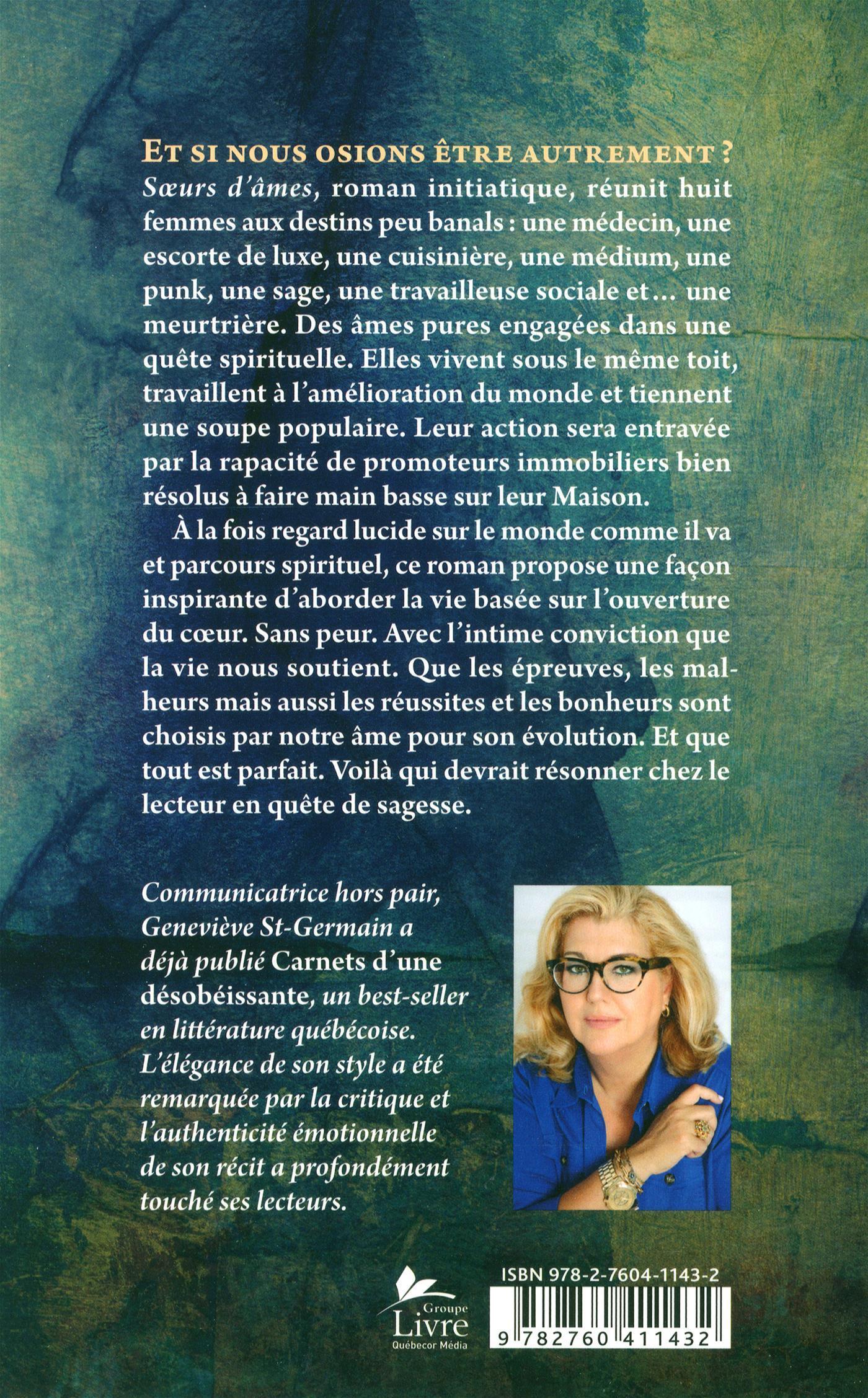 Soeurs d'âmes, roman initiatique, réunit huit femmes aux destins peu banals : une médecin, une escorte de luxe, une cuisinière, une médium, une punk, une sage, une consultante en ressources humaines et… une meurtrière. Des âmes pures engagées dans une quête spirituelle.
