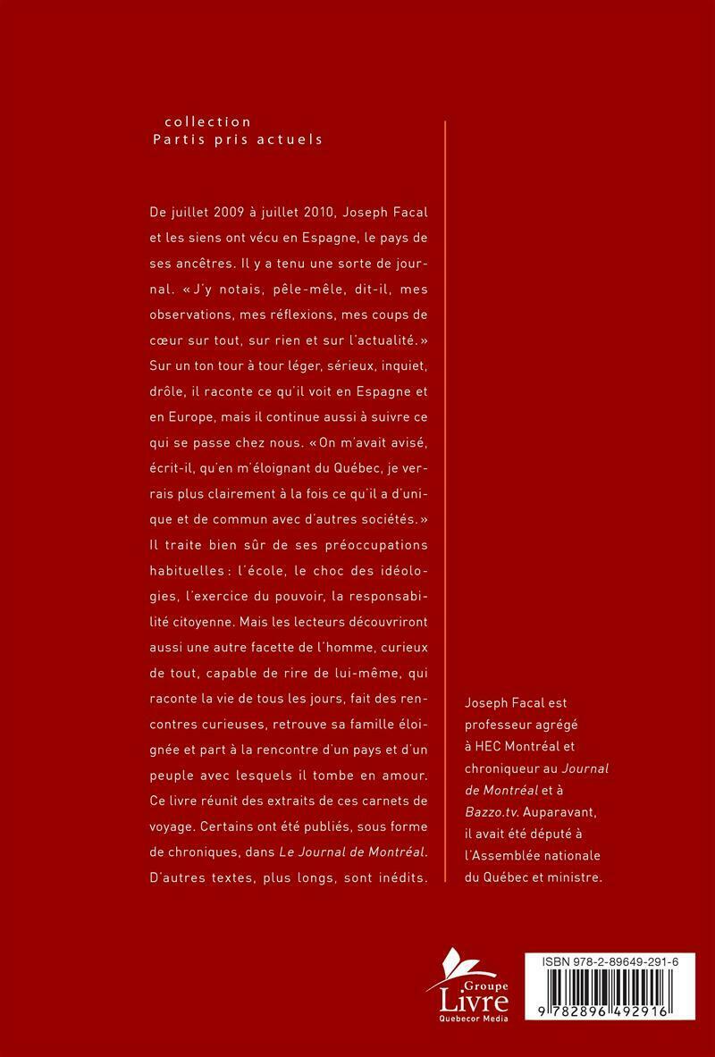 .Joseph Facal s'est installé avec toute sa famille en Espagne. Il a tenu pendant son séjour un journal dont certains extraits sont parus dans le Journal de Montréal.
