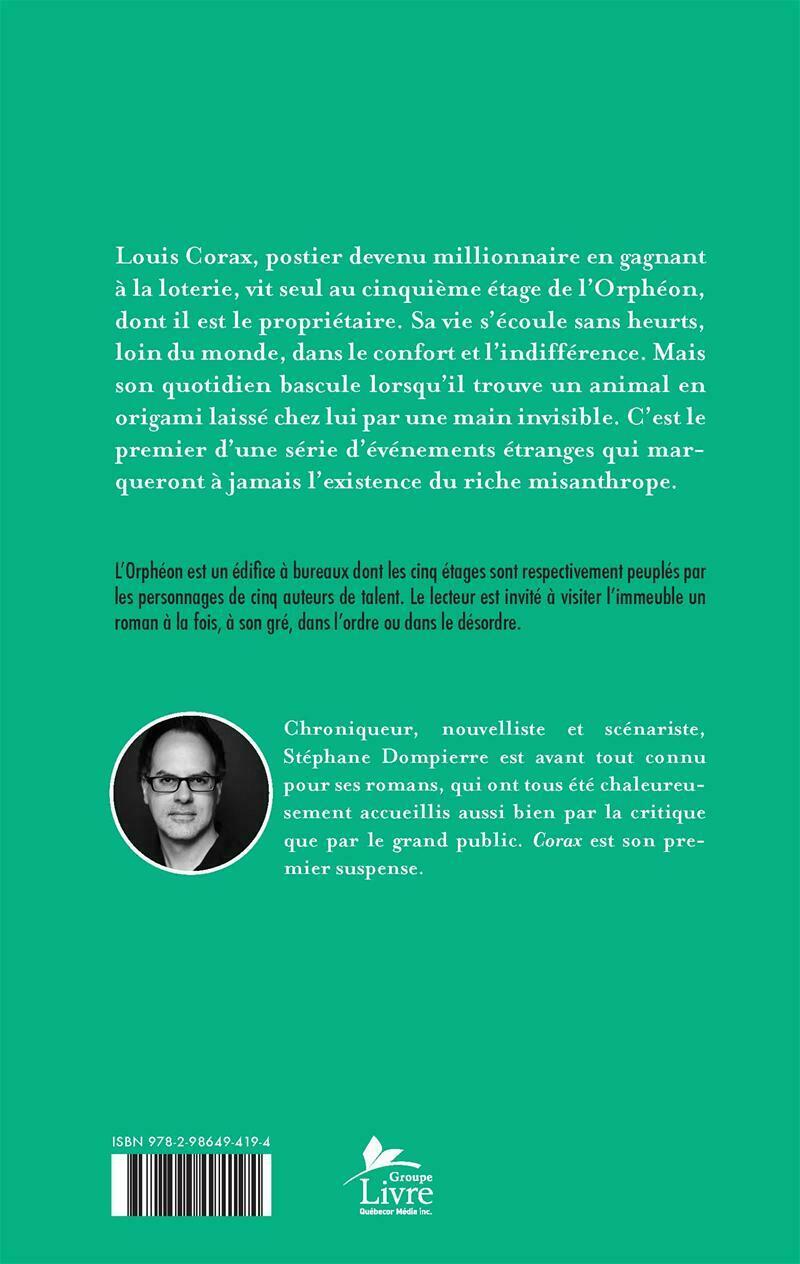 Louis Corax, postier devenu millionnaire en gagnant à la loterie, vit seul au cinquième étage de l'Orphéon, dont il est le propriétaire. Sa vie s'écoule sans heurts, loin du monde, dans le confort et l'indifférence. Mais son quotidien bascule lorsqu'il trouve un animal en origami laissé chez lui par une main invisible. C'est le premier d'une série d'événements étranges qui marqueront à jamais l'existence du riche misanthrope.
