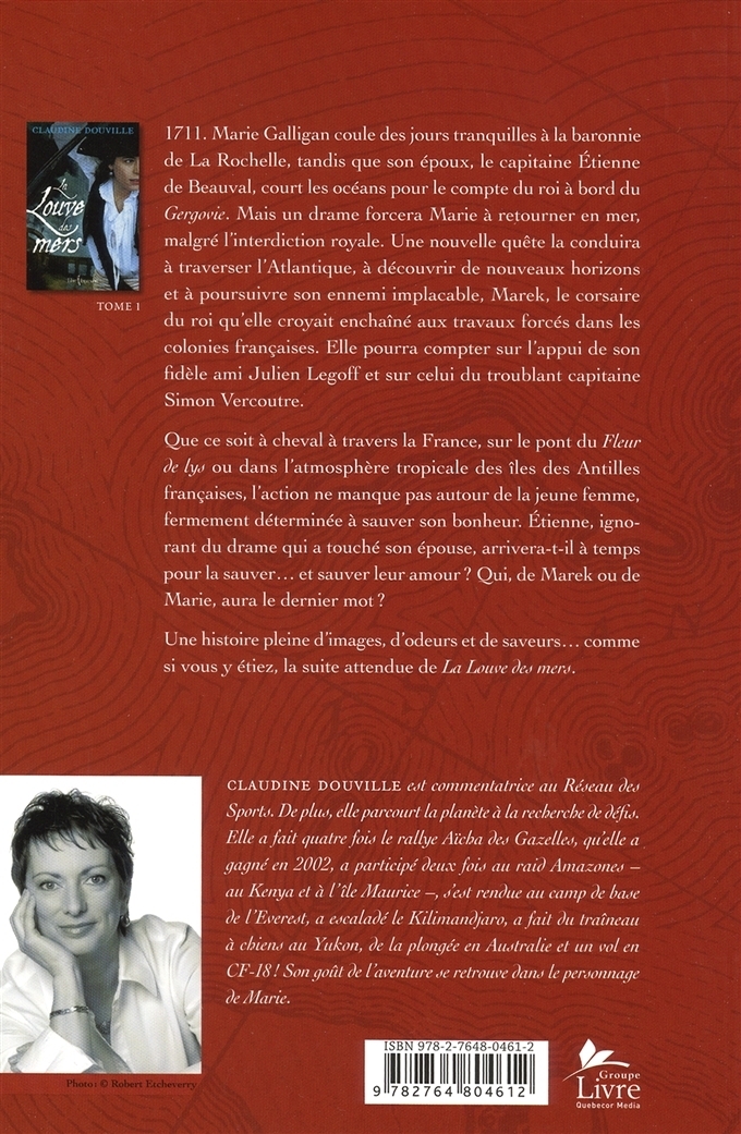 Après avoir navigué sur La Louve des mers, Marie, maintenant de Beauval, coule des jours tranquilles (trop !) à La Rochelle dans le domaine qu’elle occupe avec son mari, Étienne, parti en mer en mission pour le roi. Julien Legoff et son épouse, Marguerite, vivent au domaine, s’occupant de la gérance de la boutique et de ses succursales. Marek, qu’on croyait oublié dans les colonies où le roi l’a envoyé en exil, ressurgit dans la vie de la jeune femme et profite de son absence au domaine, ainsi que de celle de Legoff, pour enlever son fils. « Il oubliera jusqu’à ton nom. » Marie est au désespoir. Tous la pressent d’attendre le retour d’Étienne, mais sa décision est prise, elle part à la recherche de son enfant. Julien Legoff décide d’accompagner la jeune femme. Ils devront se rendre à Brest pour tenter de trouver place sur un bateau en partance pour les colonies. Ils sillonnent donc la France dans un voyage qui ne sera pas de tout repos, mais où ils rencontreront de vieux amis et s’en feront de nouveaux. Tempête, mutinerie, dangers de toutes sortes, Marie se retrouve encore une fois dans une situation délicate qui la mènera sur les rives d’une île où elle rencontrera une tribu d’Indiens Caraïbes réputés pour être féroces et dangereux. La Guadeloupe lui ouvre les bras avec son soleil chaud et ses pièges multiples. Marie progresse non sans mal vers son but ultime, maintenant partagé par d’autres : la rencontre de Marek, chacun ayant ses motivations propres.