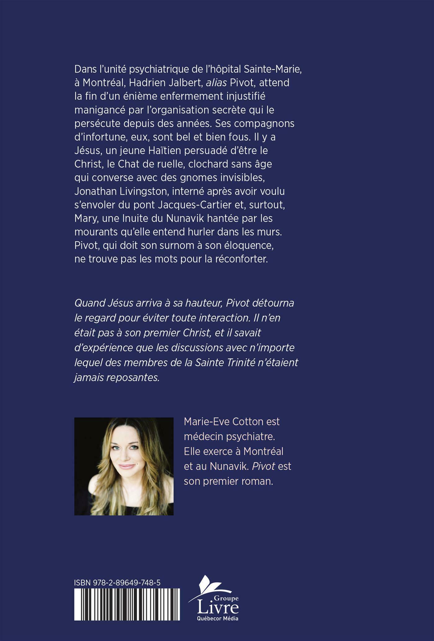 Dans l'unité psychiatrique de l'hôpital Sainte-Marie, à Montréal, Hadrien Jalbert, alias Pivot, attend la fin d'un énième enfermement injustifié manigancé par l'organisation secrète qui le persécute depuis des années. Ses compagnons d'infortune, eux, sont bel et bien fous. Il y a Jésus, un jeune Haïtien persuadé d'être le Christ, le Chat de ruelle, clochard sans âge qui converse avec des gnomes invisibles, Jonathan Livingston, interné après avoir voulu s'envoler du pont Jacques-Cartier et, surtout, Mary, une Inuite du Nunavik hantée par les mourants qu'elle entend hurler dans les murs. Pivot, qui doit son surnom à son éloquence, ne trouve pas les mots pour la réconforter.
