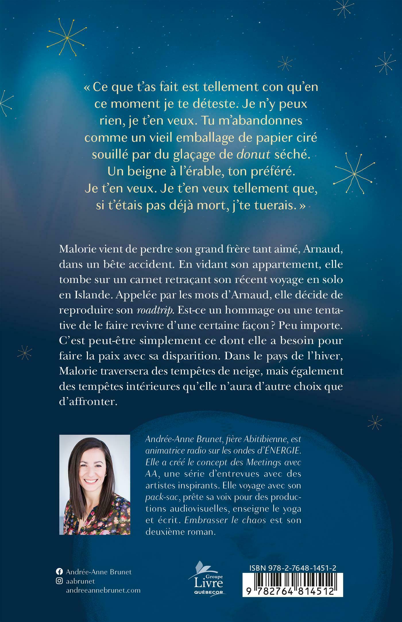Malorie vient de perdre son grand frère tant aimé, Arnaud, dans un bête accident. En vidant son appartement, elle tombe sur un carnet retraçant son récent voyage en solo en Islande. Appelée par les mots d'Arnaud, elle décide de reproduire son roadtrip. Est-ce un hommage ou une tentative de le faire revivre d'une certaine façon ? Peu importe. C'est peut-être simplement ce dont elle a besoin pour faire la paix avec sa disparition. Dans le pays de l'hiver, Malorie traversera des tempêtes de neige, mais également des tempêtes intérieures qu'elle n'aura d'autre choix que d'affronter.