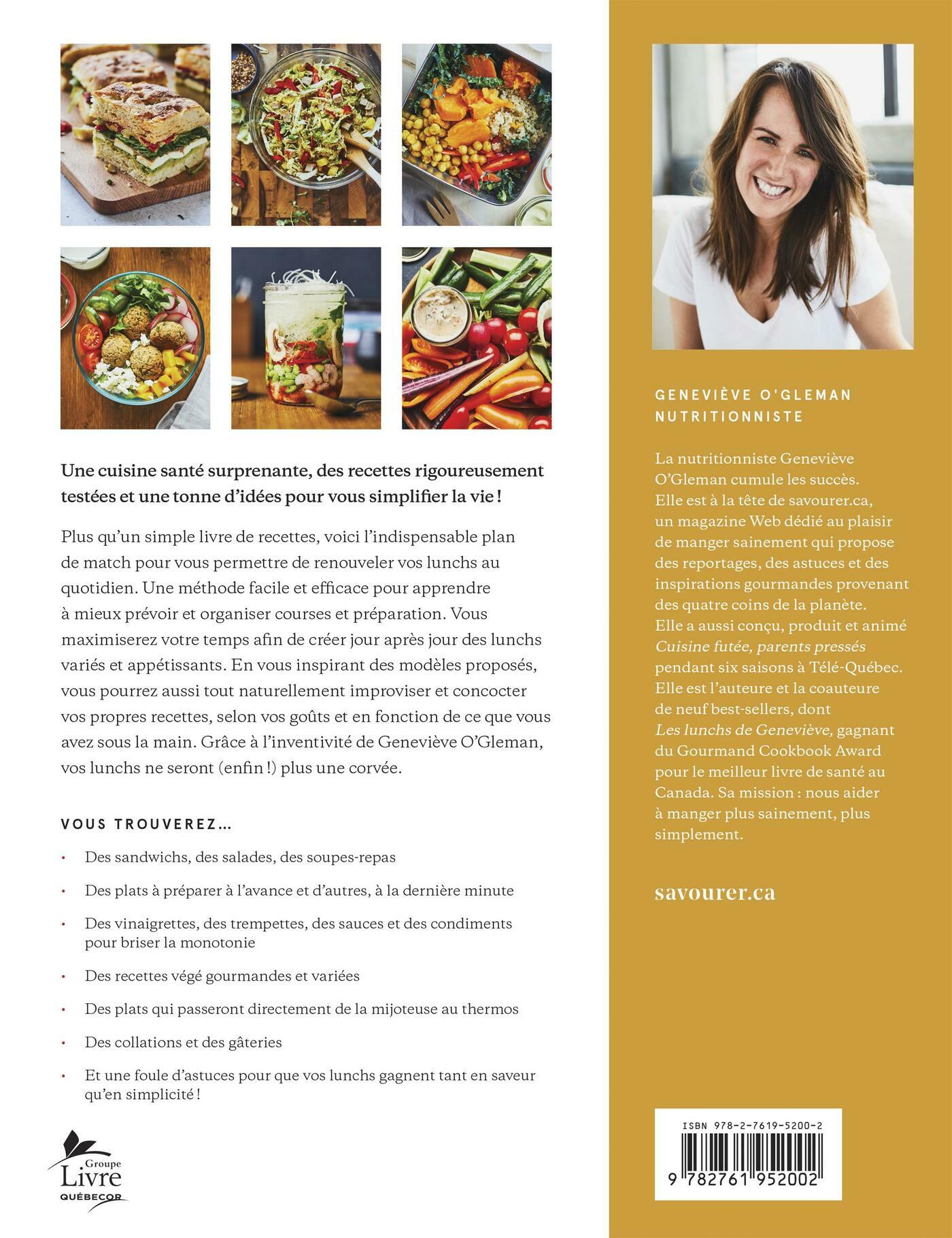 .Plus qu'un simple livre de recettes, voici l'indispensable plan de match pour vous permettre de renouveler vos lunchs au quotidien. Une méthode facile et efficace pour apprendre à mieux prévoir et organiser courses et préparation. Vous maximiserez votre temps afin de créer jour après jour des lunchs variés et appétissants. En vous inspirant des modèles proposés, vous pourrez aussi tout naturellement improviser et concocter vos propres recettes, selon vos goûts et en fonction de ce que vous avez sous la main. Grâce à l'inventivité de Geneviève O'Gleman, vos lunchs ne seront (enfin!) plus une corvée.