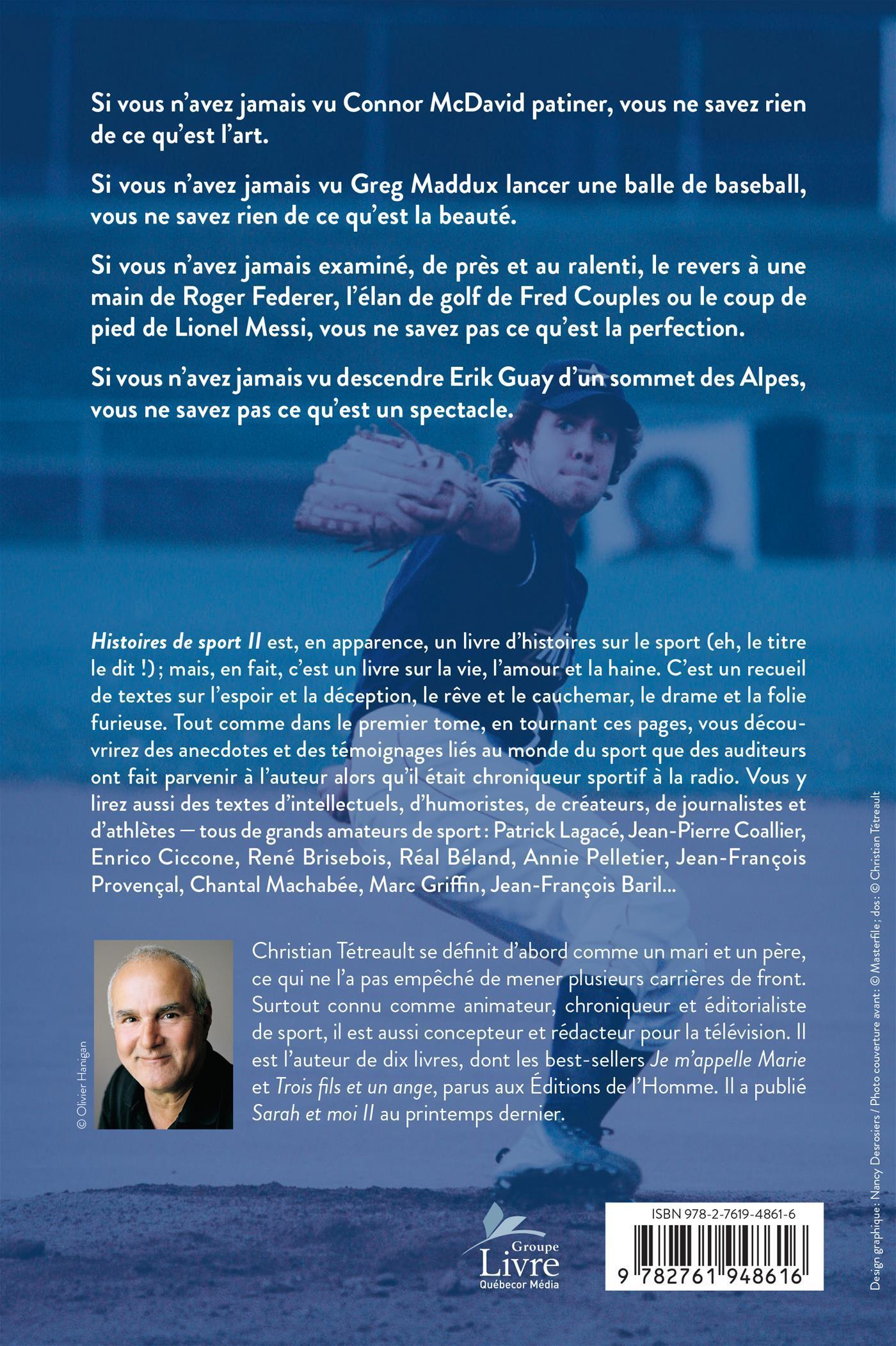 Histoires de sport II est, en apparence, un livre d'histoires sur le sport (eh, le titre le dit!); mais, en fait, c'est un livre sur la vie, l'amour et la haine. C'est un recueil de textes sur l'espoir et la déception, le rêve et le cauchemar, le drame et la folie furieuse. Tout comme dans le premier tome, en tournant ces pages, vous découvrirez des anecdotes et des témoignages liés au monde du sport que des auditeurs ont fait parvenir à l'auteur alors qu'il était chroniqueur sportif à la radio.