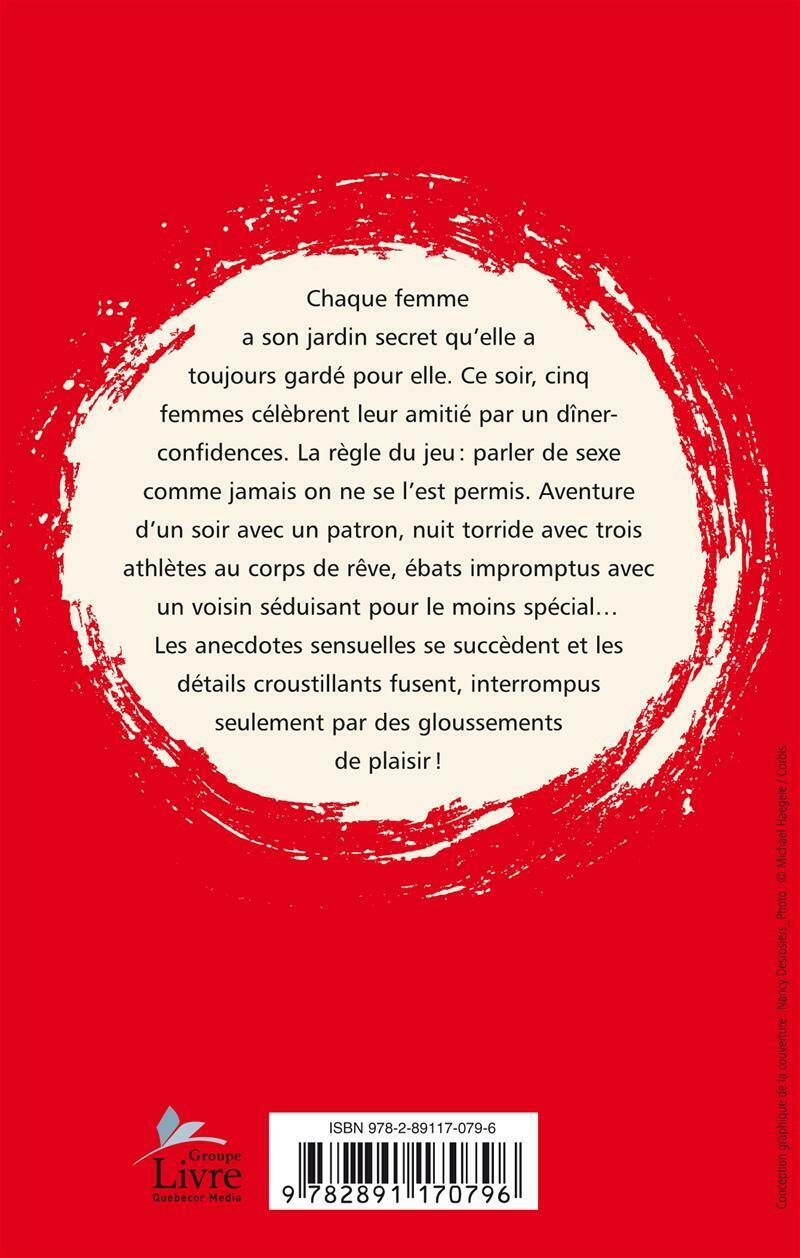 Chaque femme a son jardin secret qu'elle a toujours gardé pour elle. Ce soir, cinq femmes célèbrent leur amitié par un dîner-confidences. La règle du jeu?: parler de sexe comme jamais on ne se l'est permis. Aventure d'un soir avec un patron, nuit torride avec trois athlètes au corps de rêve, ébats impromptus avec un voisin séduisant pour le moins spécial… Les anecdotes sensuelles se succèdent et les détails croustillants fusent, interrompus seulement par des gloussements de plaisir !