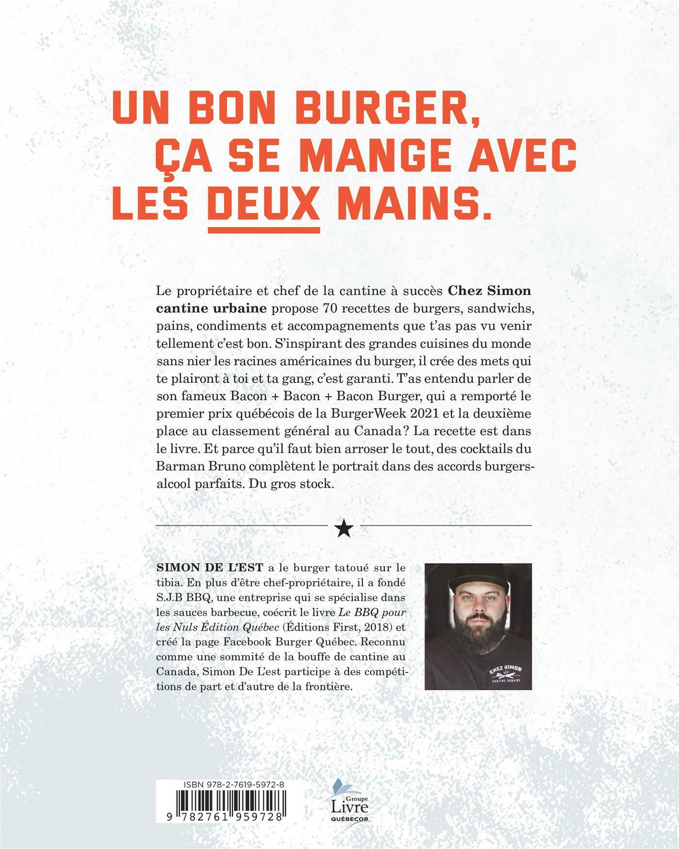 Le propriétaire et chef de la cantine à succès Chez Simon cantine urbaine propose 70 recettes de burgers, sandwichs, pains, condiments et accompagnements que t'as pas vu venir tellement c'est bon. S'inspirant des grandes cuisines du monde sans nier les racines américaines du burger, il crée des mets qui te plairont à toi et ta gang, c'est garanti.