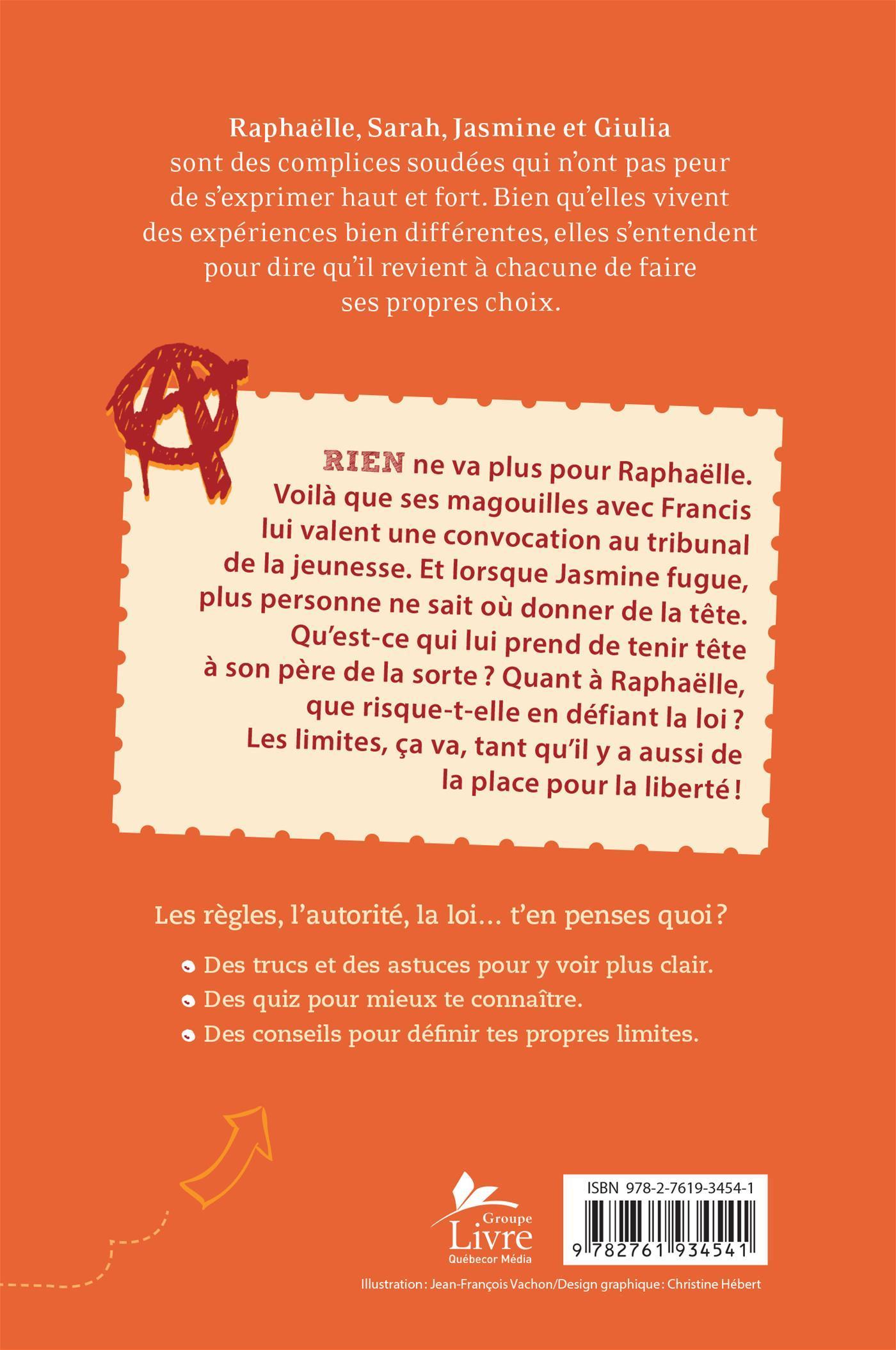 Rien ne va plus pour Raphaëlle. Voilà que ses magouilles avec Francis lui valent une convocation au tribunal de la jeunesse. Et lorsque Jasmine fugue, plus personne ne sait où donner de la tête. Qu'est-ce qui lui prend de tenir tête à son père de la sorte? Quant à Raphaëlle, que risque-t-elle en défiant la loi? Les limites, ça va, tant qu'il y a aussi de la place pour la liberté!