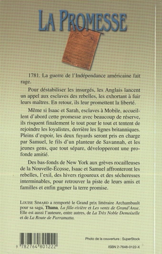 Des bas-fonds de New York aux grèves rocailleuses de la Nouvelle-Écosse, Isaac et Samuel affronterons les rebelles, l'exil, des hivers rigoureux et des sécheresses interminables, pour trouver la piste de leurs amis et familles et enfin gagner la terre promise.