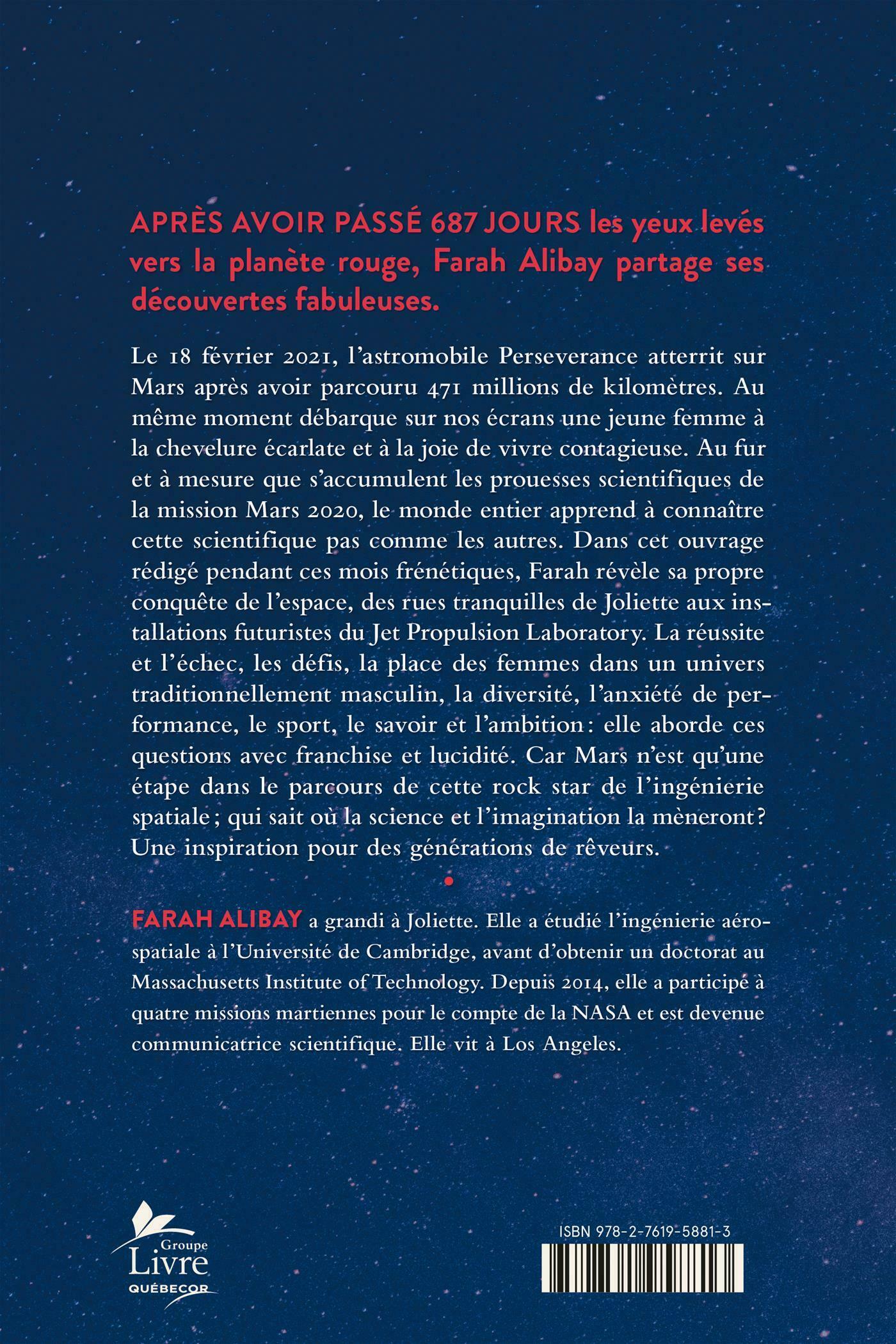 Dans cet ouvrage rédigé pendant ces mois frénétiques, Farah révèle sa propre conquête de l'espace, des rues tranquilles de Joliette aux installations futuristes du Jet Propulsion Laboratory. La réussite et l'échec, les défis, la place des femmes dans un univers traditionnellement masculin, la diversité, l'anxiété de performance, le sport, le savoir et l'ambition: elle aborde ces questions avec franchise et lucidité.
