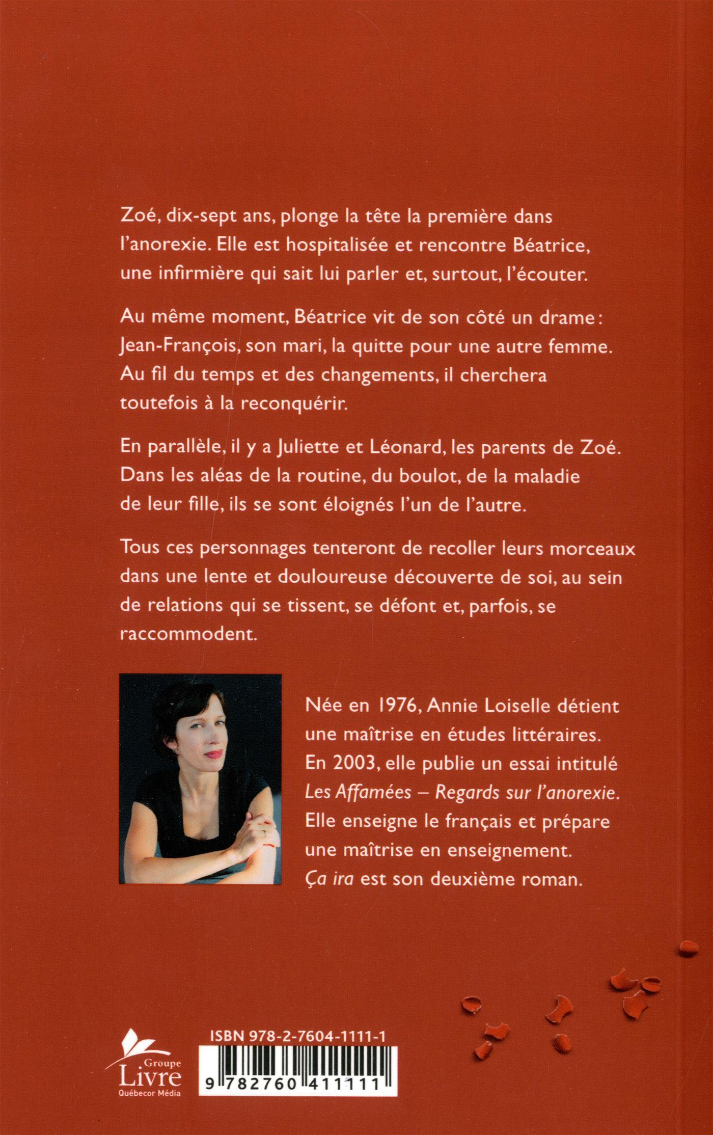 Ça ira met en scène Zoé, dix-sept ans. Aux prises avec l'anorexie depuis une agression sexuelle, elle rencontre Béatrice, une infirmière compatissante qui l'accompagnera dans son cheminement.