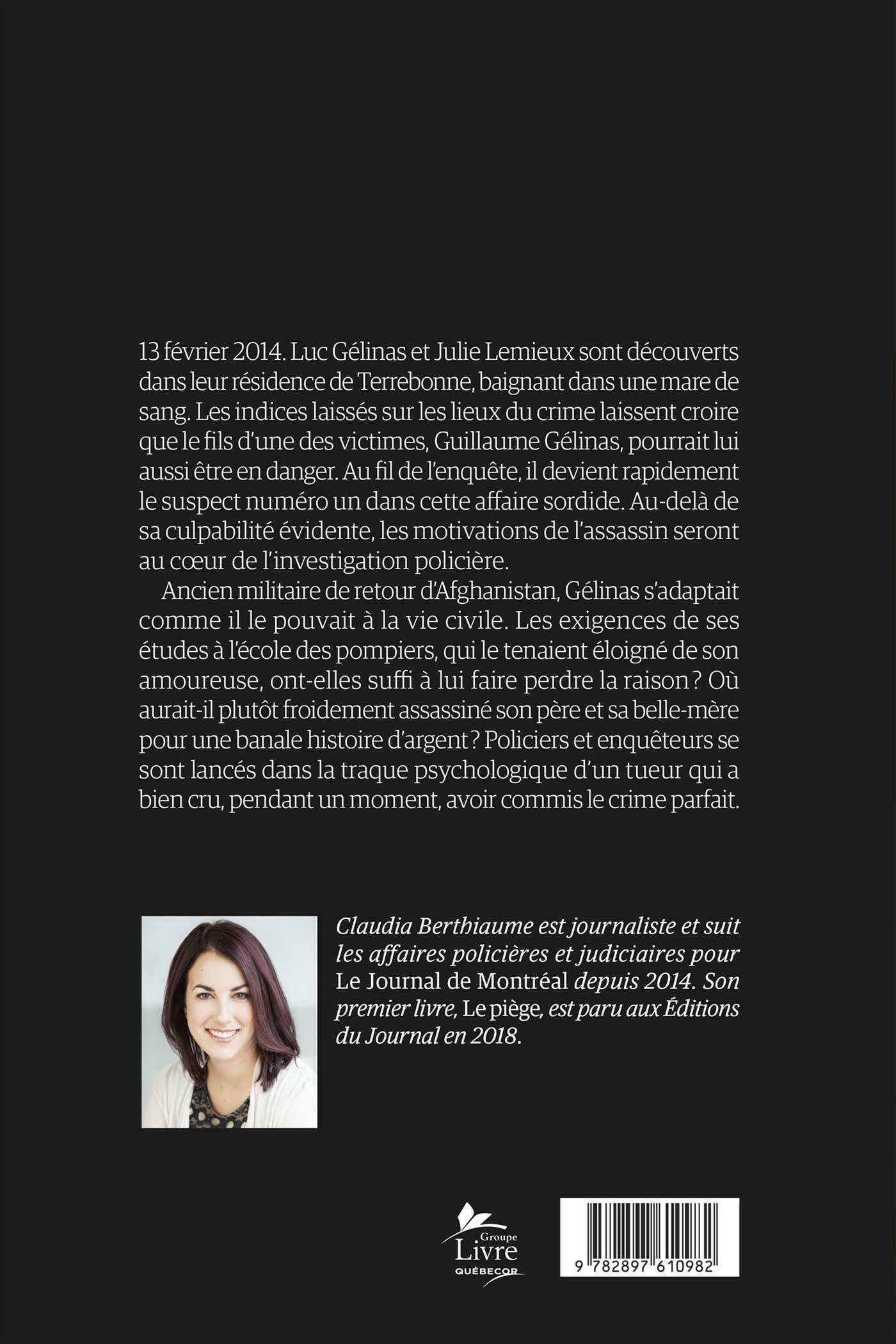 .Ancien militaire de retour d'Afghanistan, Gélinas s'adaptait comme il le pouvait à la vie civile. Les exigences de ses études à l'école des pompiers qui le tenaient éloigné de son amoureuse, ont-elles suffi à lui faire perdre la raison ? Où aurait-il plutôt froidement assassiné son père et sa belle-mère pour une banale histoire d'argent ? Policiers et enquêteurs se sont lancés dans la traque psychologique d'un tueur qui a bien cru, pendant un moment, avoir commis le crime parfait.