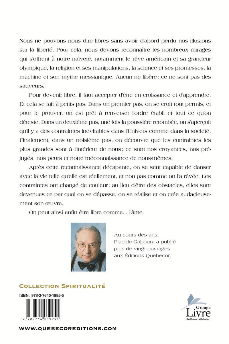 Pour devenir libre, il faut accepter d'être en croissance et d'apprendre. Et cela se fait à petits pas. Dans un premier pas, on se croit tout permis, et pour le prouver, on est prêt à renverser l'ordre établi et tout ce qu'on déteste. Dans un deuxième pas, une fois la poussière retombée, on s'aperçoit qu'il y a des contraintes inévitables dans l'Univers comme dans la société. Finalement-, dans un troisième pas, on découvre que les contraintes les plus grandes sont à l'intérieur de nous; ce sont nos croyances, nos préjugés, nos peurs et notre méconnaissance de nous-mêmes.