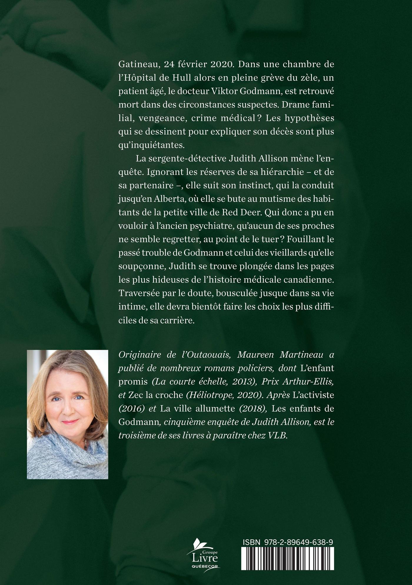 La sergente-détective Judith Allison mène l'enquête. Ignorant les réserves de sa hiérarchie – et de sa partenaire –, elle suit son instinct, qui la conduit jusqu'en Alberta, où elle se bute au mutisme des habitants de la petite ville de Red Deer. Qui donc a pu en vouloir à l'ancien psychiatre, qu'aucun de ses proches ne semble regretter, au point de le tuer ? Fouillant le passé trouble de Godmann et celui des vieillards qu'elle soupçonne, Judith se trouve plongée dans les pages les plus hideuses de l'histoire médicale canadienne. Traversée par le doute, bousculée jusque dans sa vie intime, elle devra bientôt faire les choix les plus difficiles de sa carrière.