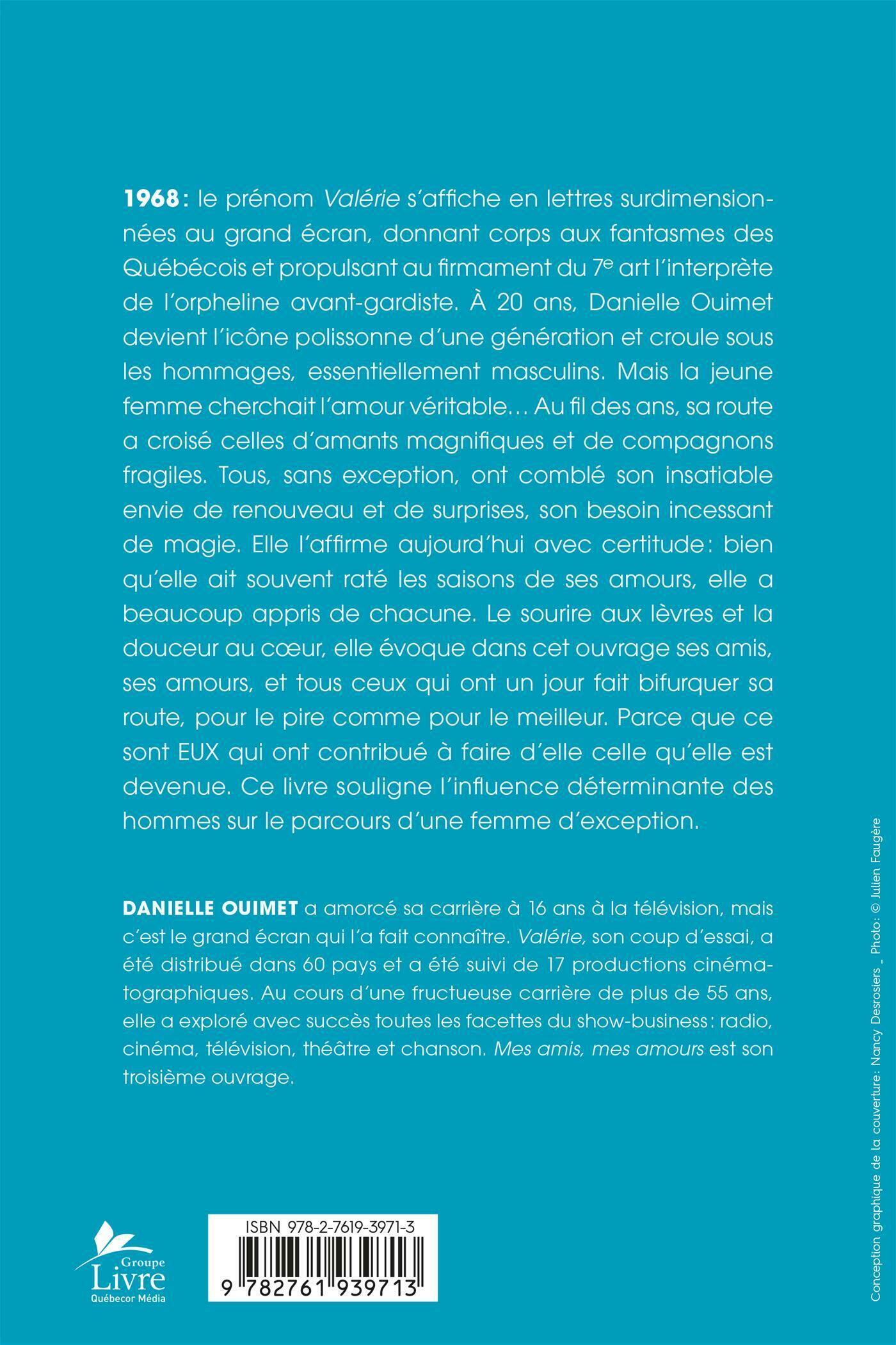 1968: le prénom Valérie s'affiche en lettres surdimensionnées au grand écran, donnant corps aux fantasmes des Québécois et propulsant au firmament du 7e art l'interprète de l'orpheline avant-gardiste. À 20 ans, Danielle Ouimet devient l'icône polissonne d'une génération et croule sous les hommages, essentiellement masculins. Mais la jeune femme cherchait l'amour véritable… Au fil des ans, sa route a croisé celles d'amants magnifiques et de compagnons fragiles. Tous, sans exception, ont comblé son insatiable envie de renouveau et de surprises, son besoin incessant de magie. Elle l'affirme aujourd'hui avec certitude: bien qu'elle ait souvent raté les saisons de ses amours, elle a beaucoup appris de chacune. Le sourire aux lèvres et la douceur au cœur, elle évoque dans cet ouvrage ses amis, ses amours, et tous ceux qui ont un jour fait bifurquer sa route, pour le pire comme pour le meilleur. Parce que ce sont EUX qui ont contribué à faire d'elle celle qu'elle est devenue. Ce livre souligne l'influence déterminante des hommes sur le parcours d'une femme d'exception.