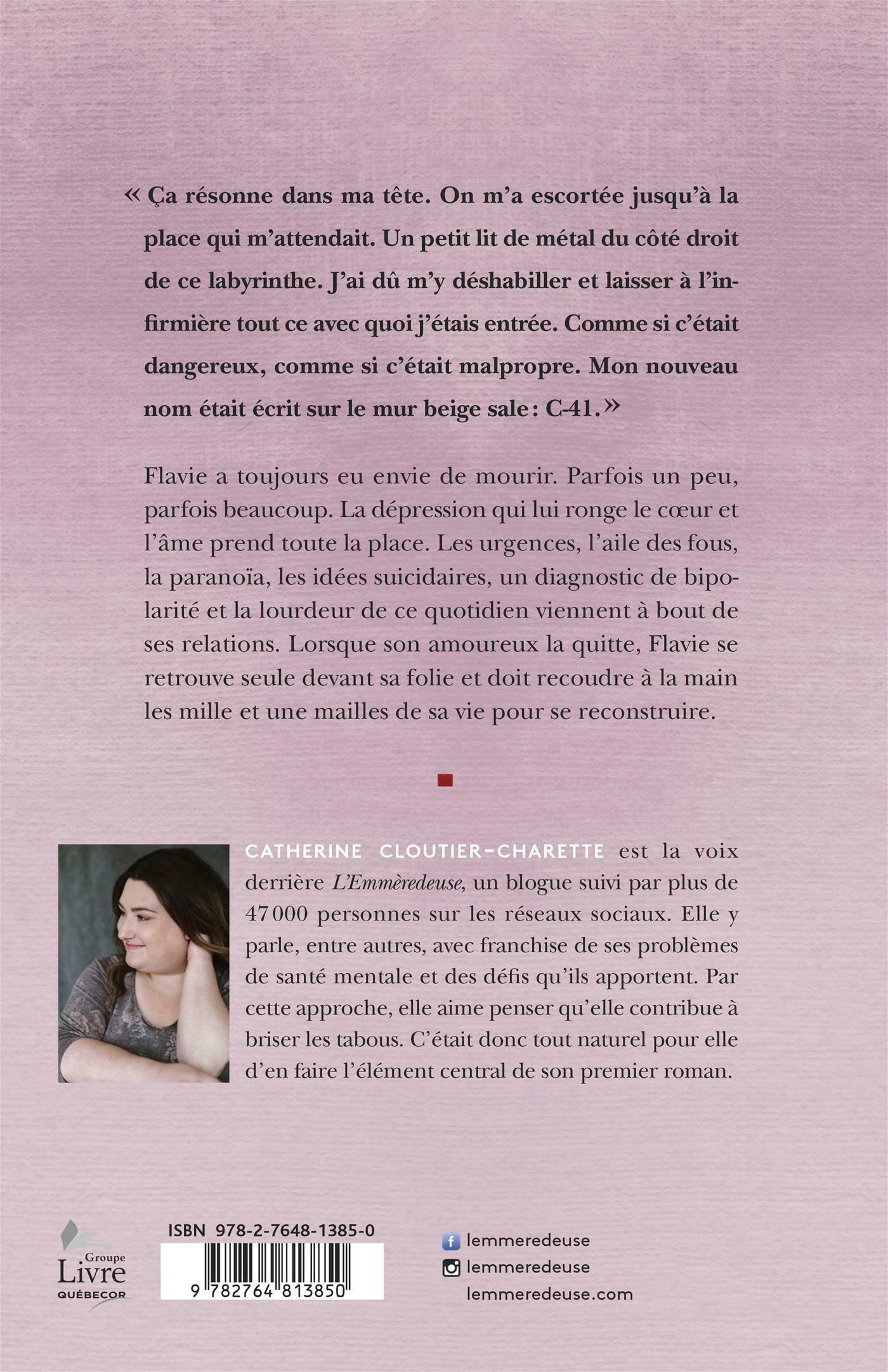 Flavie a toujours eu envie de mourir. Parfois un peu, parfois beaucoup. La dépression qui lui ronge le cœur et l'âme prend toute la place. Les urgences, l'aile des fous, la paranoïa, les idées suicidaires, un diagnostic de bipolarité et la lourdeur de ce quotidien viennent à bout de ses relations. Lorsque son amoureux la quitte, Flavie se retrouve seule devant sa folie et doit recoudre à la main les mille et une mailles de sa vie pour se reconstruire.