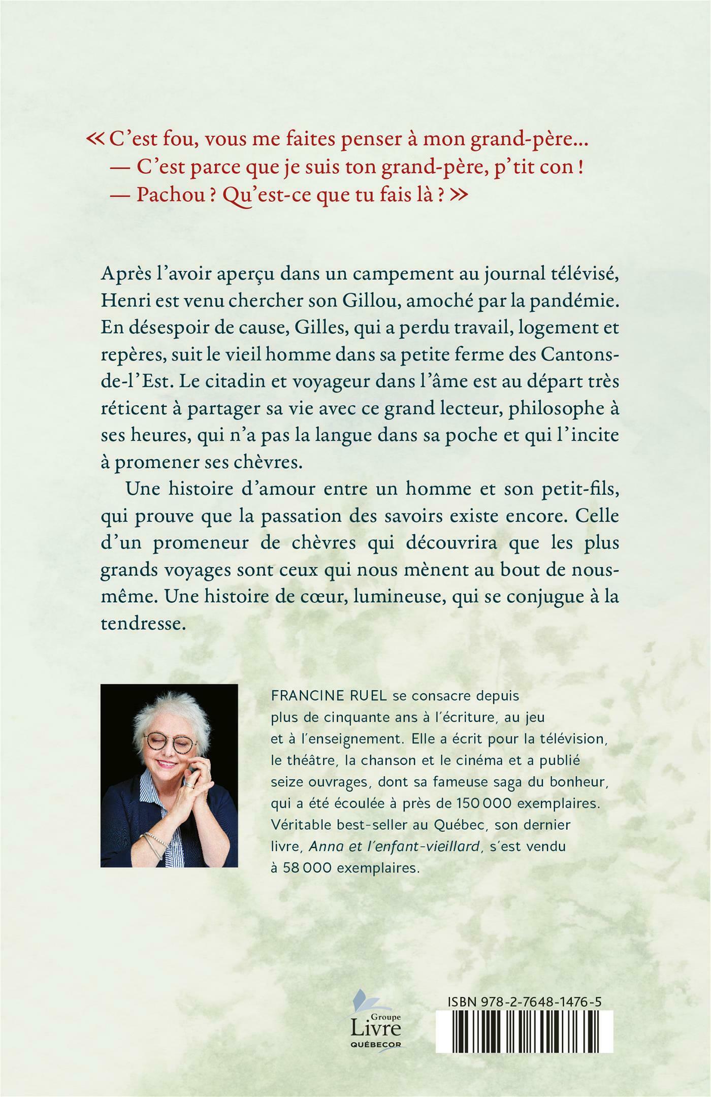 Après l'avoir aperçu dans un campement au journal télévisé, Henri est venu chercher son Gillou, amoché par la pandémie. En désespoir de cause, Gilles, qui a perdu travail, logement et repères, suit le vieil homme dans sa petite ferme des Cantons-de-l'Est. Le citadin et voyageur dans l'âme est au départ très réticent à partager sa vie avec ce grand lecteur, philosophe à ses heures, qui n'a pas la langue dans sa poche et qui l'incite à promener ses chèvres.