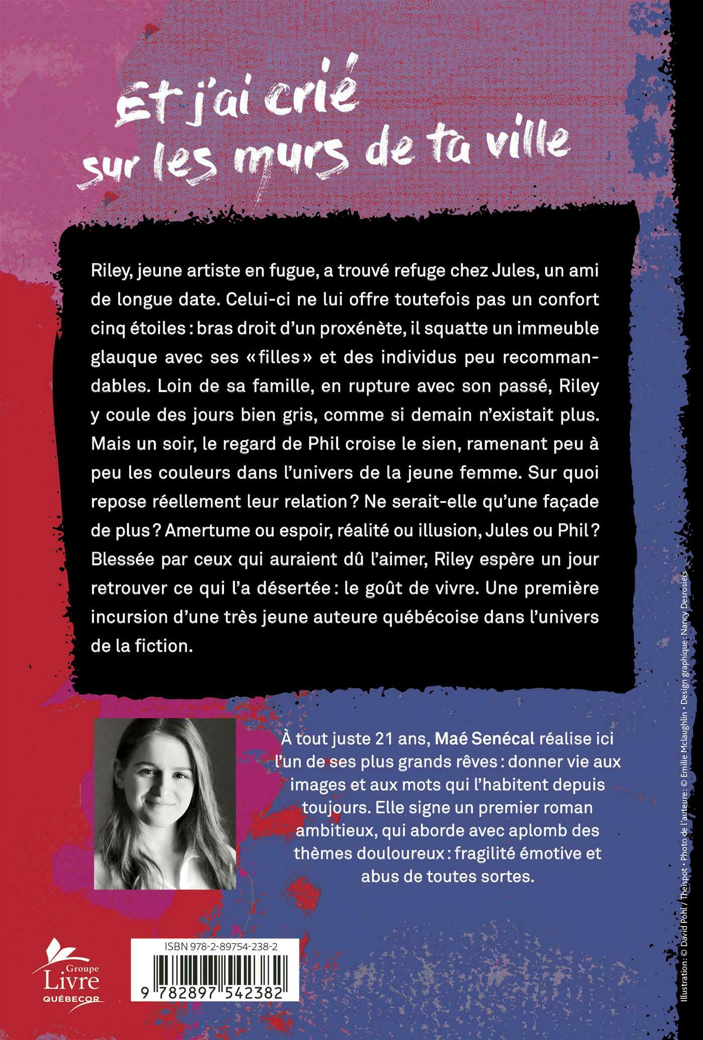 Riley, jeune artiste en fugue, a trouvé refuge chez Jules, un ami de longue date. Celui-ci ne lui offre toutefois pas un confort cinq étoiles: bras droit d'un proxénète, il squatte un immeuble glauque avec ses «filles» et des individus peu recommandables. Loin de sa famille, en rupture avec son passé, Riley y coule des jours bien gris, comme si demain n'existait plus. Mais un soir, le regard de Phil croise le sien, ramenant peu à peu les couleurs dans l'univers de la jeune femme. . .Sur quoi repose réellement leur relation? Ne serait-elle qu'une façade de plus? Amertume ou espoir, réalité ou illusion, Jules ou Phil? Blessée par ceux qui auraient dû l'aimer, Riley espère un jour retrouver ce qui l'a désertée: le goût de vivre. . .Une première incursion d'une très jeune auteure québécoise dans l'univers de la fiction.
