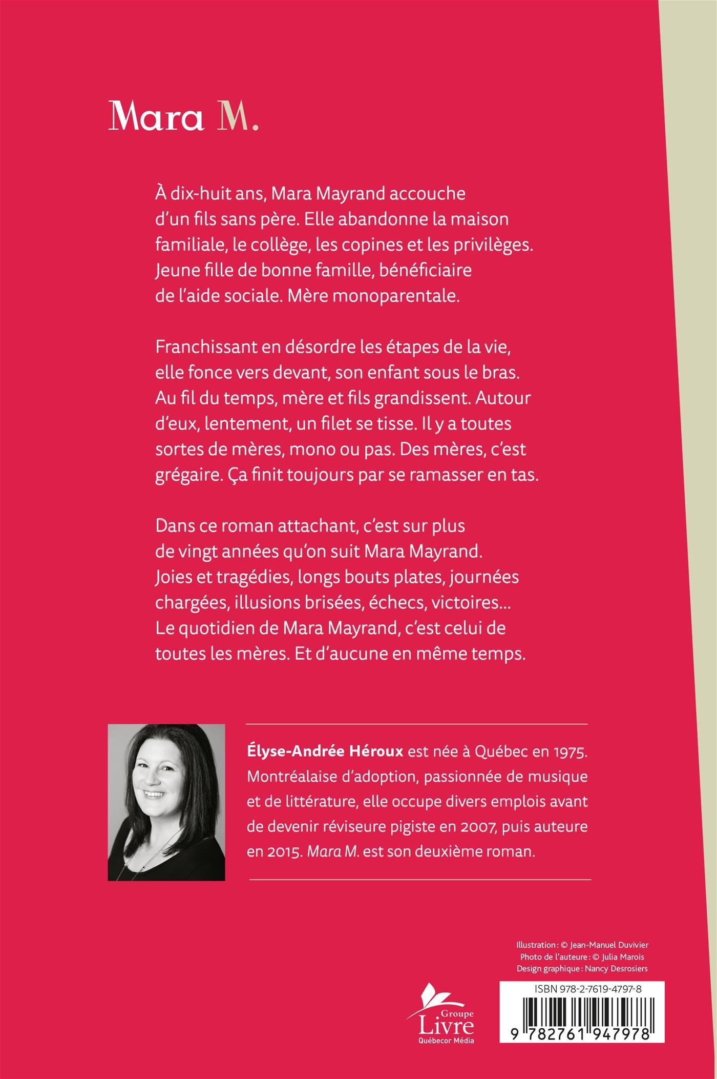 Dans ce roman attachant, c'est sur plus de vingt années qu'on suit Mara Mayrand. Joies et tragédies, longs bouts plates, journées chargées, illusions brisées, échecs, victoires… Le quotidien de Mara Mayrand, c'est celui de toutes les mères. Et d'aucune en même temps.