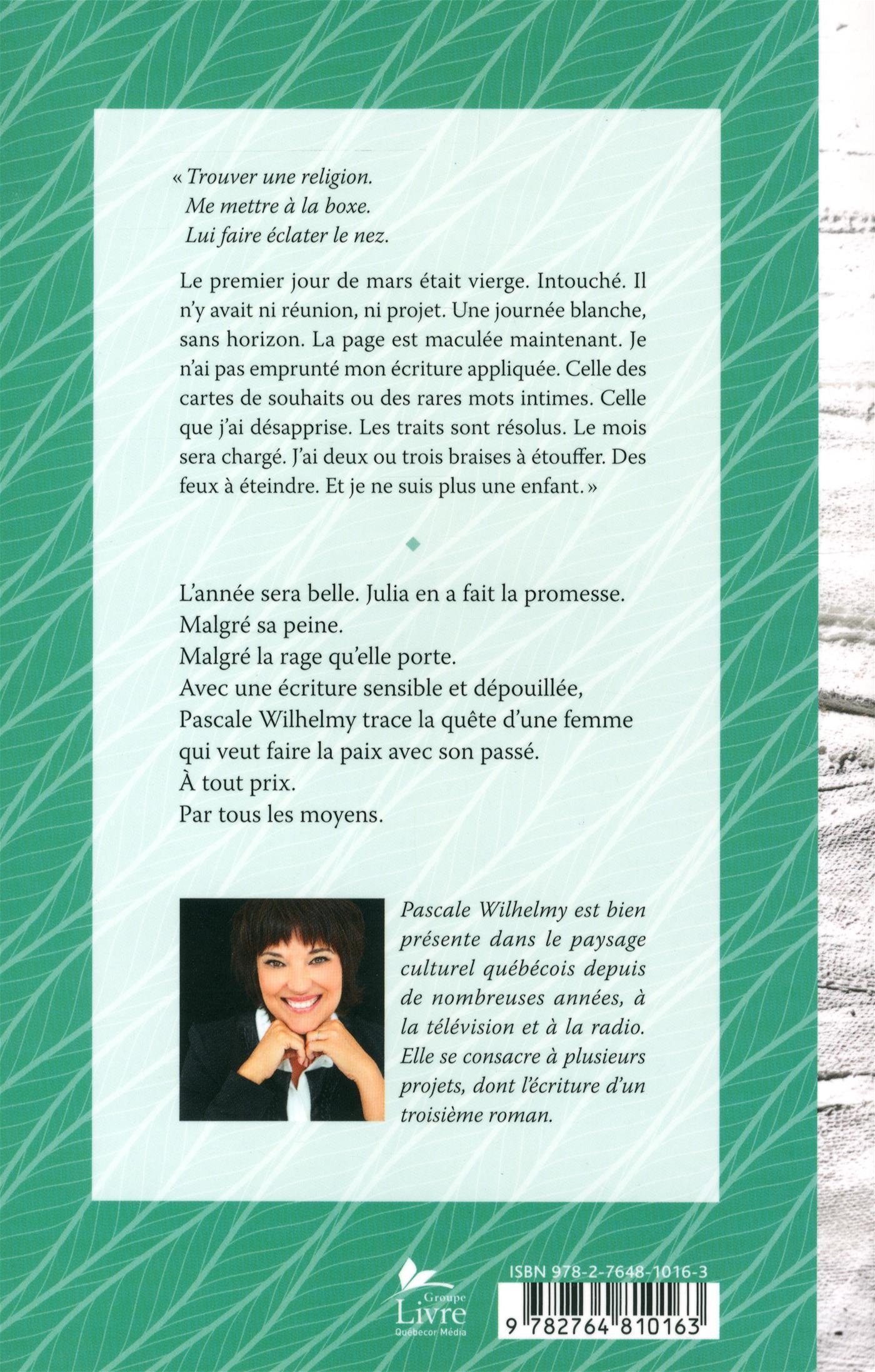 L'année sera belle. Julia en a fait la promesse. Malgré sa peine. Malgré la rage qu'elle porte. Avec une écriture sensible et dépouillée, Pascale Wilhelmy trace la quête d'une femme qui veut faire la paix avec son passé. À tout prix. Par tous les moyens.