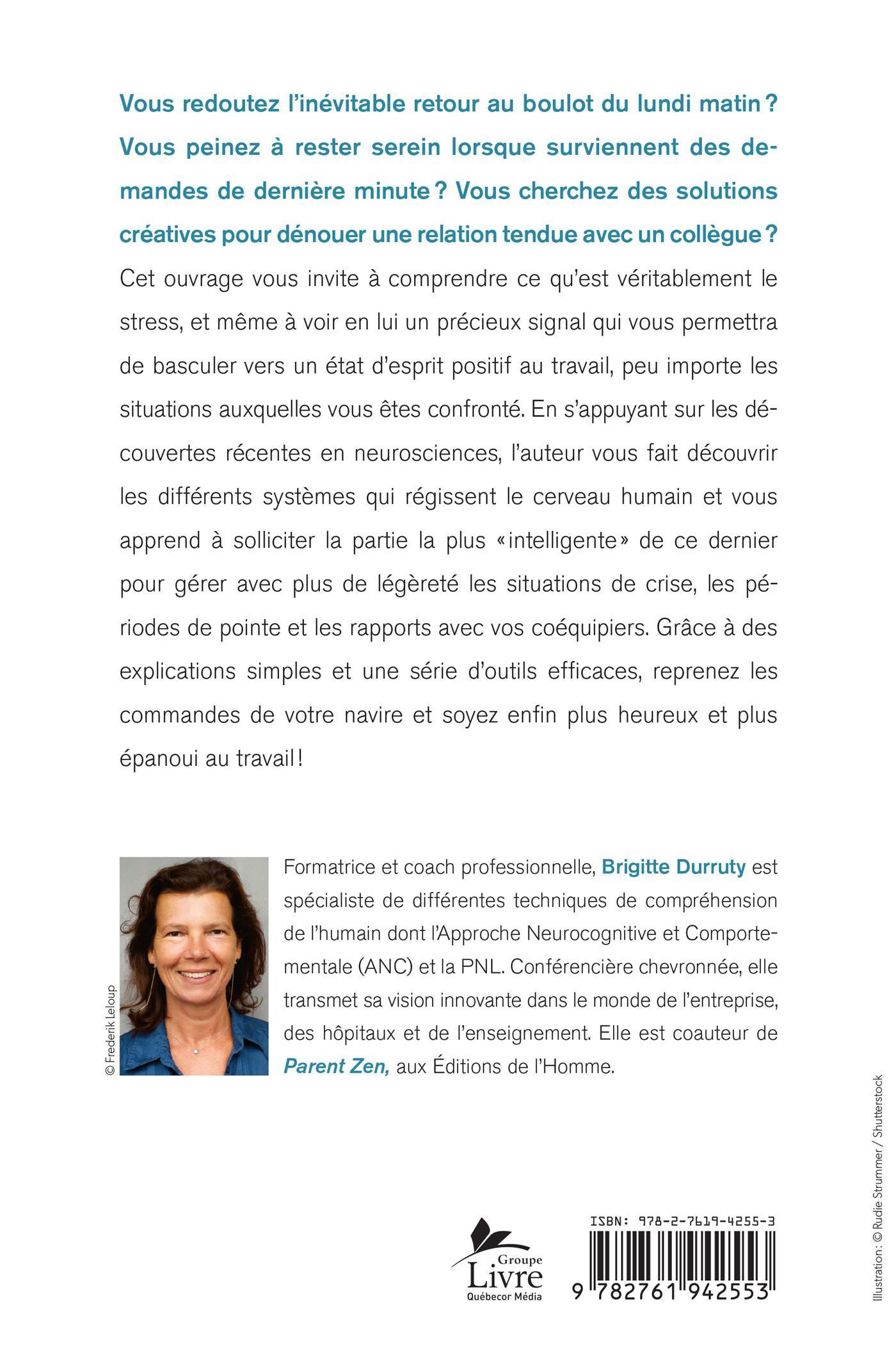 Vous redoutez l'inévitable retour au boulot du lundi matin? Vous peinez à rester serein lorsque surviennent des demandes de dernière minute? Vous cherchez des solutions créatives pour dénouer une relation tendue avec un collègue? Cet ouvrage vous invite à comprendre ce qu'est véritablement le stress, et même à voir en lui un précieux signal qui vous permettra de basculer vers un état d'esprit positif au travail, peu importe les situations auxquelles vous êtes confronté. En s'appuyant sur les découvertes récentes en neurosciences, l'auteur vous fait découvrir les différents systèmes qui régissent le cerveau humain et vous apprend à solliciter la partie la plus «intelligente» de ce dernier pour gérer avec plus de légèreté les situations de crise, les périodes de pointe et les rapports avec vos coéquipiers. Grâce à des explications simples et une série d'outils efficaces, reprenez les commandes de votre navire et soyez enfin plus heureux et plus épanoui au travail!