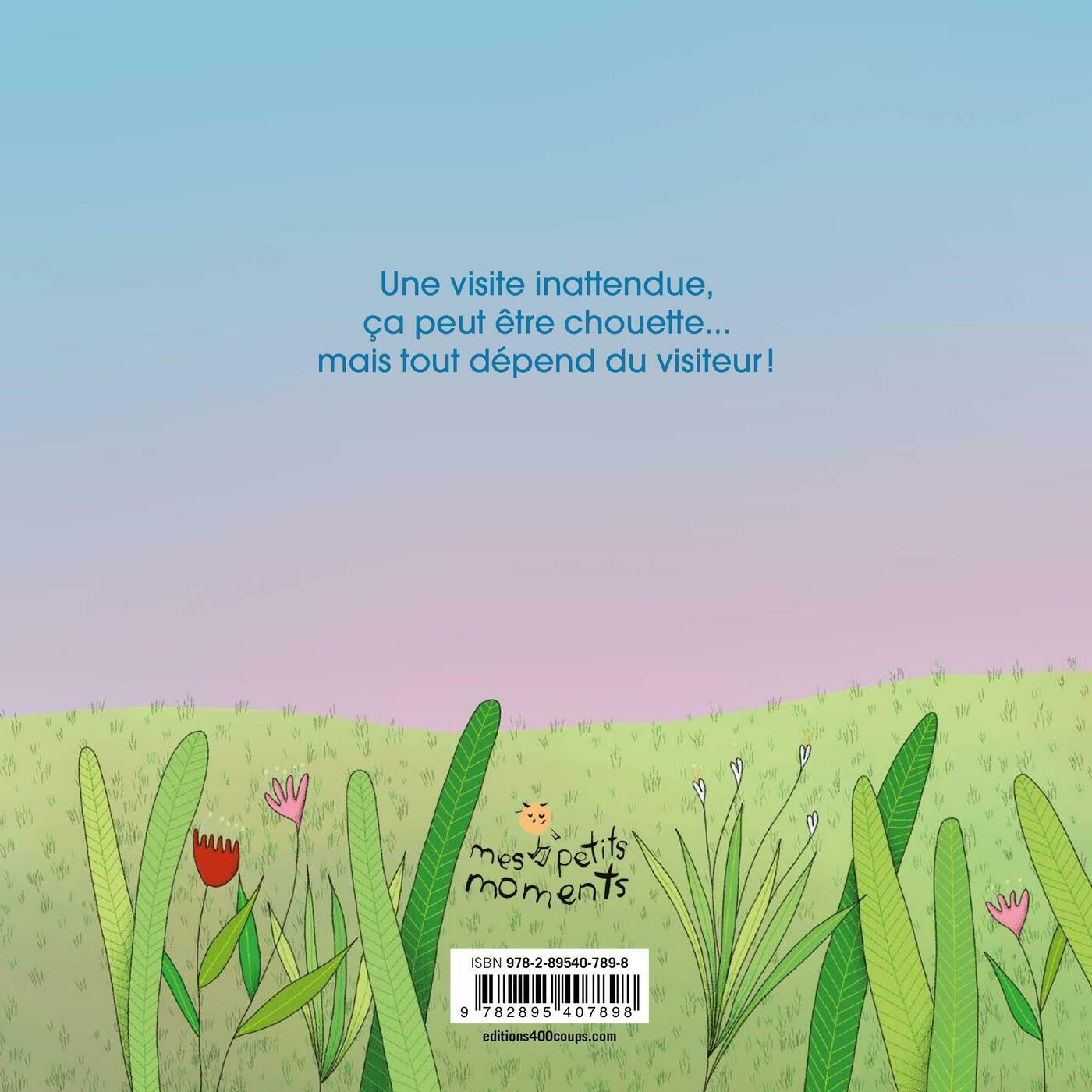 Une visite inattendue, ça peut être chouette... mais tout dépend du visiteur ! Cette histoire pleine d’humour et de fantaisie présente une petite famille qui rentre chez elle et fait face à une visiteuse qu’elle préfèrerait éviter. Mais que faire alors ? Paniquer ? Crier ? Chanter ? Lui lancer de la nourriture ? La petite famille n’est pas à court d’idées, mais fera-t-elle le bon choix ?C’est ce que vous découvrirez à travers le texte d’Anne-Marie Rioux qui, enrichie des illustrations dynamiques et colorées d’Yves Dumont, s’inscrit dans la nouvelle collection des 400 coups, Mes petits moments. Cette nouvelle collection se veut une réponse aux enseignants qui souhaitaient offrir à leurs élèves des modèles d’histoire qui sont autant d’invitations à travailler ensemble pour que chacun puisse écrire, à son rythme et à sa façon, ses propres petits moments.