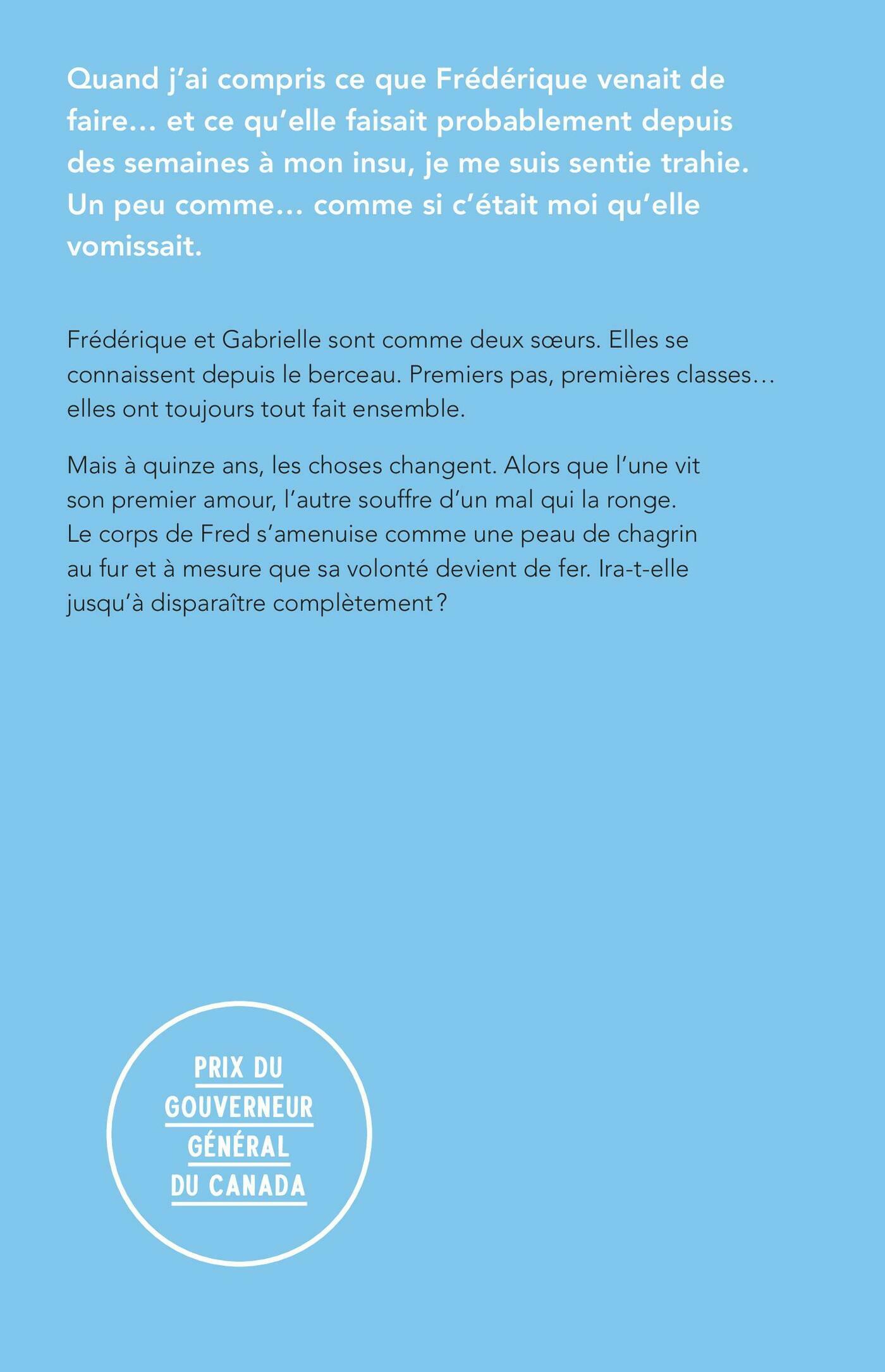 Frédérique et Gabrielle ont toujours tout fait ensemble. Mais tout est différent maintenant. L'une vit son premier amour, l'autre souffre d'un mal de l'âme qui la ronge, lui défendant de nourrir son corps. Comme une petite peau de chagrin, ira-t-elle jusqu'à disparaître complètement ?