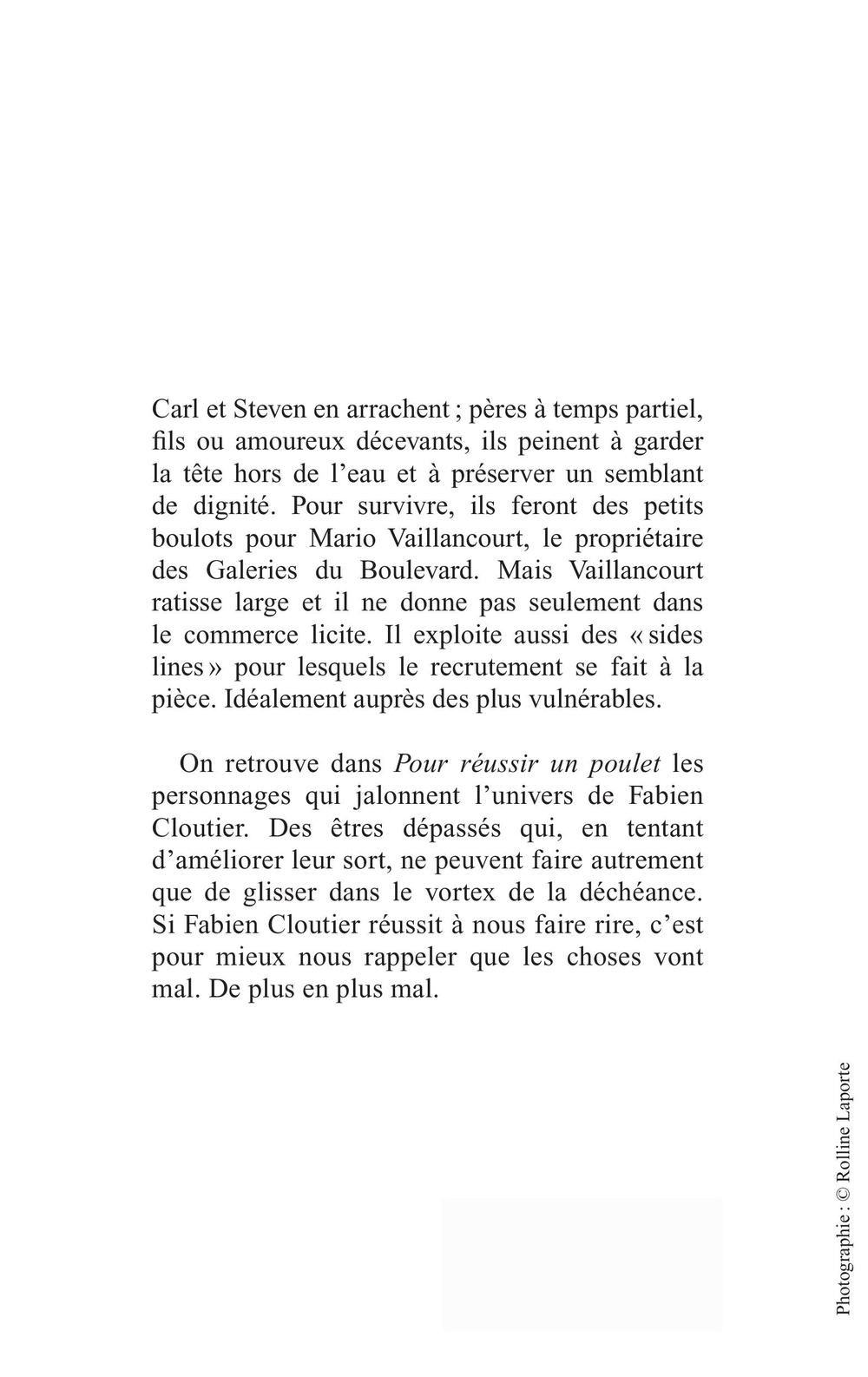 Caroline Allard, Simon Coutu, Denis Côté, Shawn Cotton, Fabien Cloutier, Marc-André Cyr, Christian Desmeules, Cyril Doisneau, Isabelle Dumont, Myriam Dupuis, Marie-Claude Élie-Morin, Daniel Grenier, Flavie Halais, Gabrielle Immarigeon, Nicolas Langelier, Sénèque Le Jeune, Jocelyn Maclure, Samuel Mercier, Pierre-Olivier Pineau, François Pesant, Marc Séguin, Richard Shearmur, Christine Smallwood, Chris Turner, Daniel Weinstock, Annie Gendron