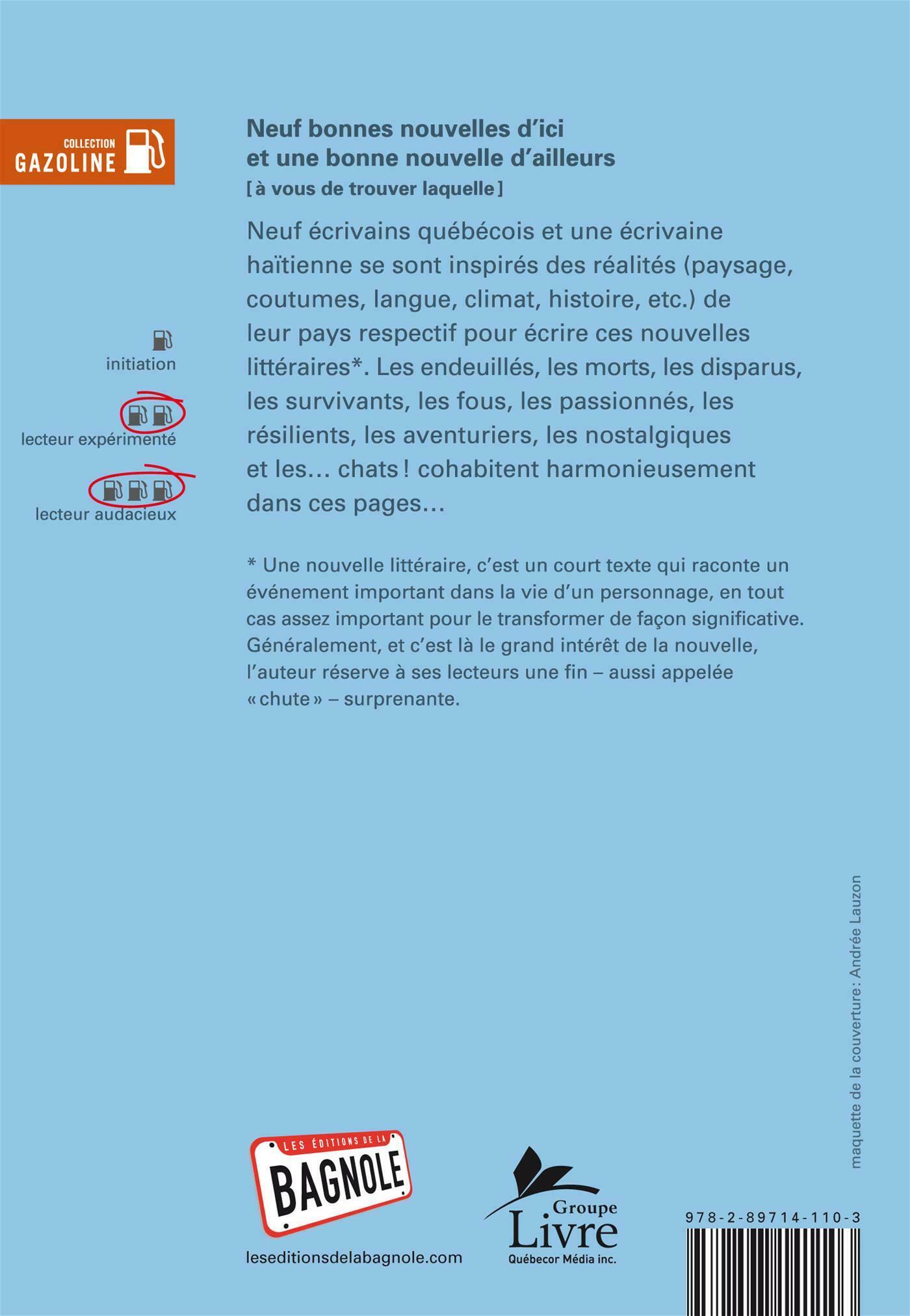 .Neuf écrivains québécois et une écrivaine haïtienne se sont inspirés des réalités (paysage, coutumes, langue, climat, histoire, etc.) de leur pays respectif pour écrire ces nouvelles littéraires*. Les endeuillés, les morts, les disparus, les survivants, les fous, les passionnés, les résilients, les aventuriers et les nostalgiques et les... chats! cohabitent harmonieusement dans ces pages…