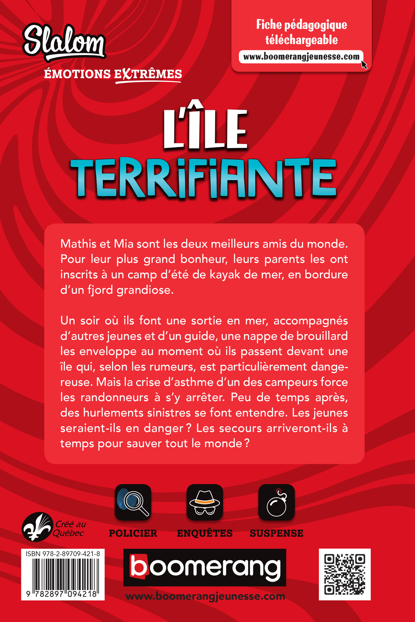 Mathis et Mia sont les deux meilleurs amis du monde. Pour leur plus grand bonheur, leurs parents les ont inscrits à un camp d’été de kayak de mer, en bordure d’un fjord grandiose. Un soir où ils font une sortie en mer, accompagnés d’autres jeunes et d’un guide, une nappe de brouillard les enveloppe au moment où ils passent devant une île qui, selon les rumeurs, est particulièrement dangereuse. Mais la crise d’asthme d’un des campeurs force les randonneurs à s’y arrêter. Peu de temps après, des hurlements sinistres se font entendre. Les jeunes seraient-ils en danger ? Les secours arriveront-ils à temps pour sauver tout le monde ?
