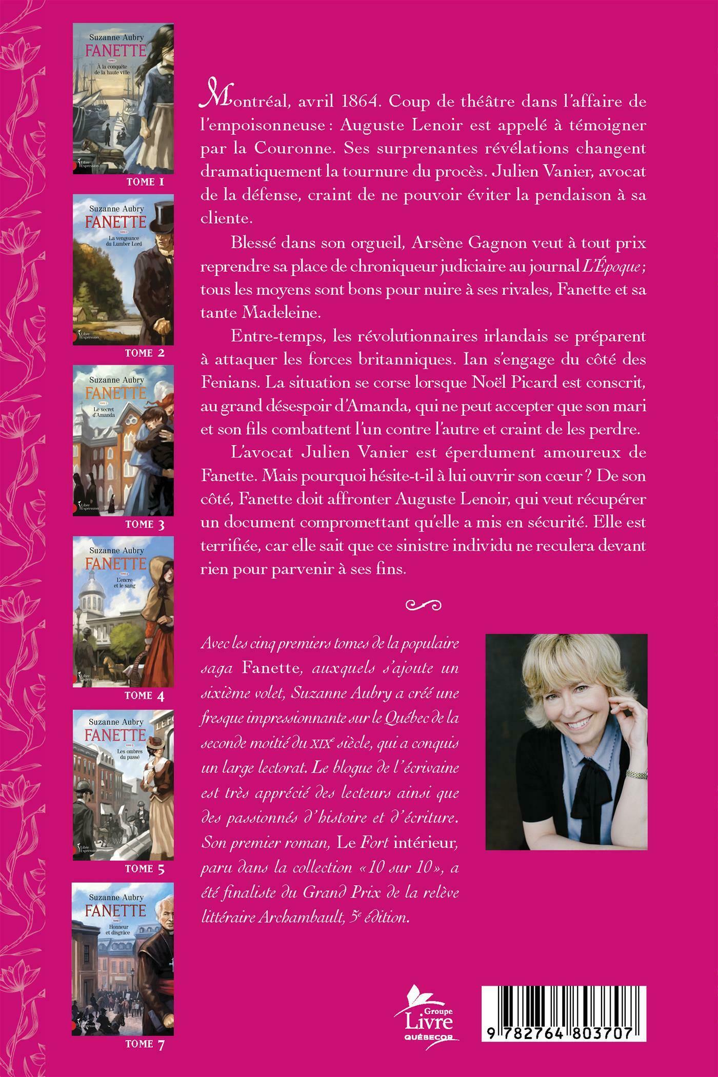 Montréal, avril 1864. Le procès d'Aimée Durand, accusée d'avoir empoisonné son mari à l'arsenic, se poursuit. Coup de théâtre : Auguste Lenoir, le sinistre agent de renseignement, est appelé à témoigner par la Couronne. Ses révélations changent dramatiquement la donne du procès. Julien Vanier, l'avocat de l'accusée, parviendra-t-il malgré tout à sauver celle-ci de la pendaison ?
