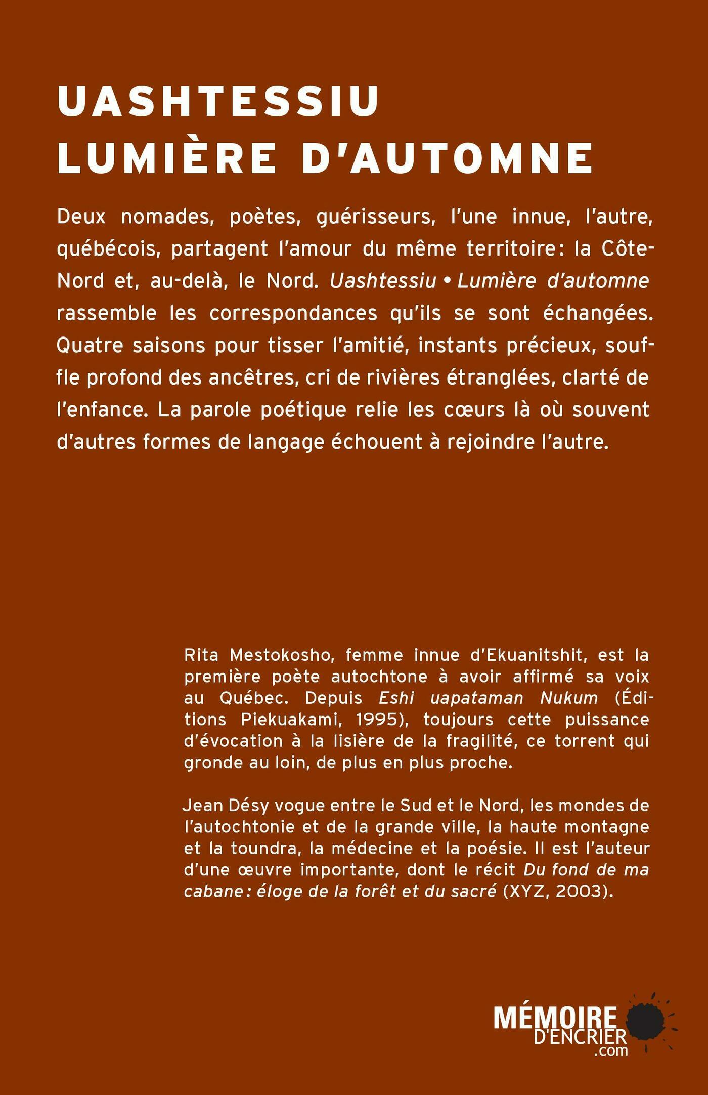 Guy Sioui Durand, Hélène Matte, Natasha Kanapé Fontaine, Mélissa Simard, Jean-Philippe Uzel, Marie-Charlotte Franco, Louise Vigneault, Pierre Bastien, Sophie Guignard, Chloë Charce, Claudia Néron, Olivier Bergeron-Martel, Vincent Napish, Sylvie Basile, Rita Mestokosho, Jonathan Lamy, Naomi fontaine, Virginia Pesemapeo Bordeleau, Marie-Andrée Gill, Véronique Hébert, Yves Sioui Durand, Nathalie Côté, Anne Pilorget, Frédérique Hamelin, Michaël La Chance
