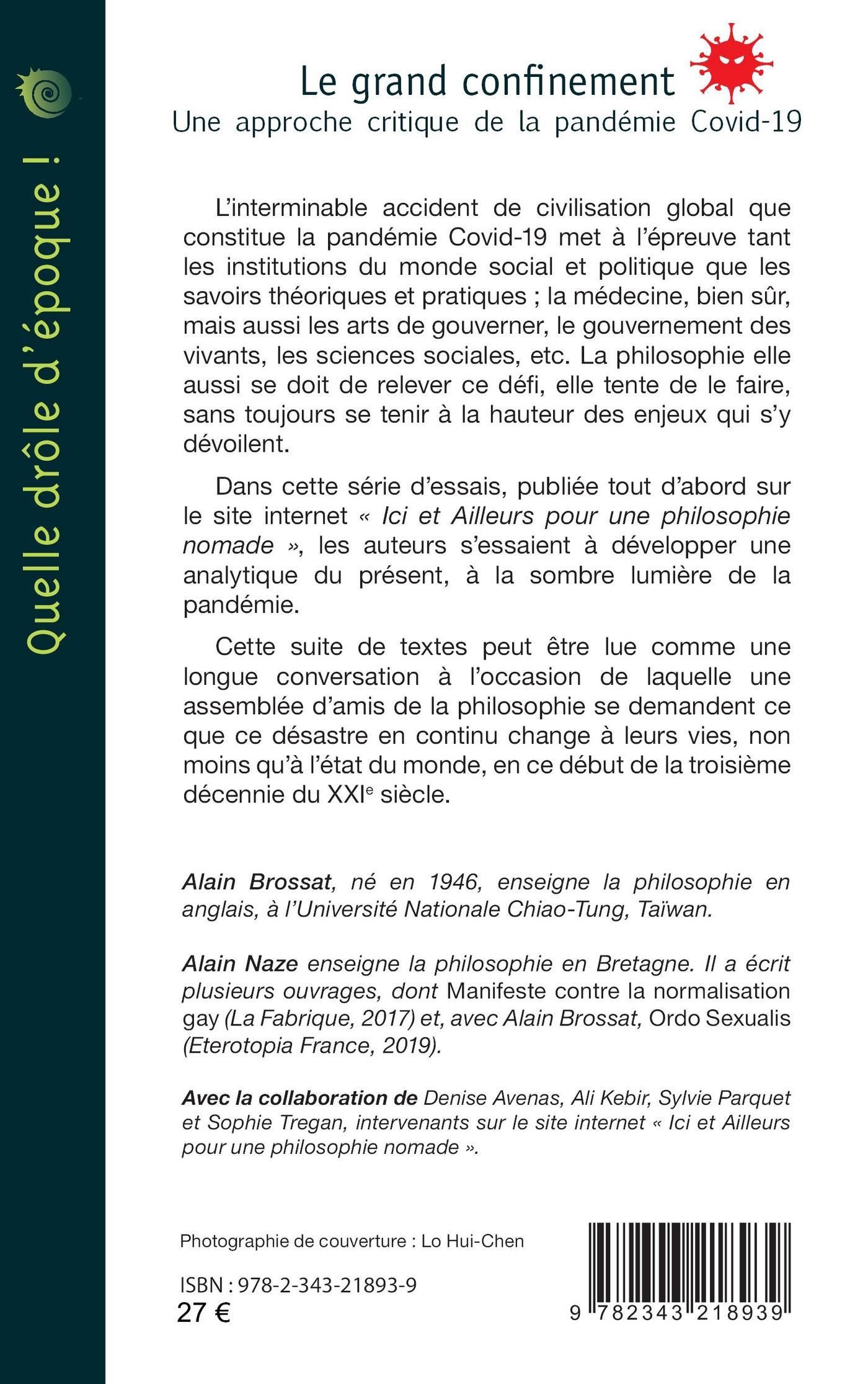 L’interminable accident de civilisation global que constitue la pandémie de Covid-19 met à l’épreuve tant les institutions sociales et politiques que les savoirs théoriques et pratiques ; la médecine, bien sûr, mais aussi les arts de gouverner, le gouvernement des vivants, les sciences sociales, etc. La philosophie elle aussi se doit de relever ce défi, elle tente de le faire, sans toujours se tenir à la hauteur des enjeux qui s’y dévoilent. Dans cette série d’essais, les auteurs s’essaient à développer une analytique du présent, à la sombre lumière de la pandémie. Cette suite de textes peut être lue comme une longue conversation au cours de laquelle des amis de la philosophie se demandent ce que ce désastre en continu change à leurs vies, non moins qu’à l’état du monde.