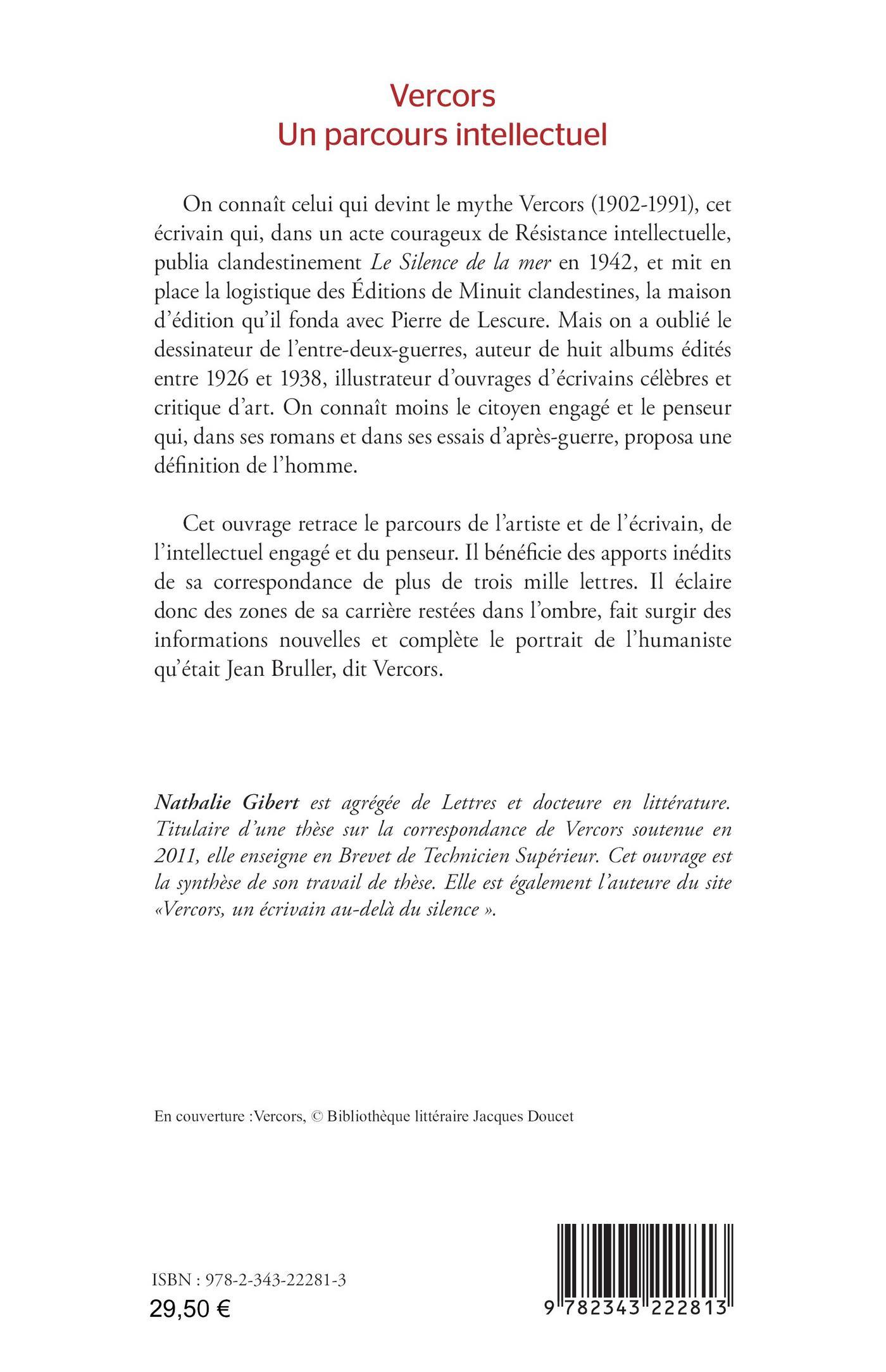 On connaît celui qui devint le mythe Vercors (1902-1991), cet écrivain qui, dans un acte courageux de Résistance intellectuelle, publia clandestinement Le Silence de la mer en 1942, et mit en place la logistique des Éditions de Minuit clandestines, la maison d’édition qu’il fonda avec Pierre de Lescure. Mais on a oublié le dessinateur de l’entre-deux-guerres, auteur de huit albums édités entre 1926 et 1938, illustrateur d’ouvrages d’écrivains célèbres et critique d’art. On connaît moins le citoyen engagé et le penseur qui, dans ses romans et dans ses essais d’après-guerre, proposa une définition de l’homme.Cet ouvrage retrace le parcours de l’artiste et de l’écrivain, de l’intellectuel engagé et du penseur. Il bénéficie des apports inédits de sa correspondance de plus de trois mille lettres. Il éclaire donc des zones de sa carrière restées dans l’ombre, fait surgir des informations nouvelles et complète le portrait de l’humaniste qu’était Jean Bruller, dit Vercors.
