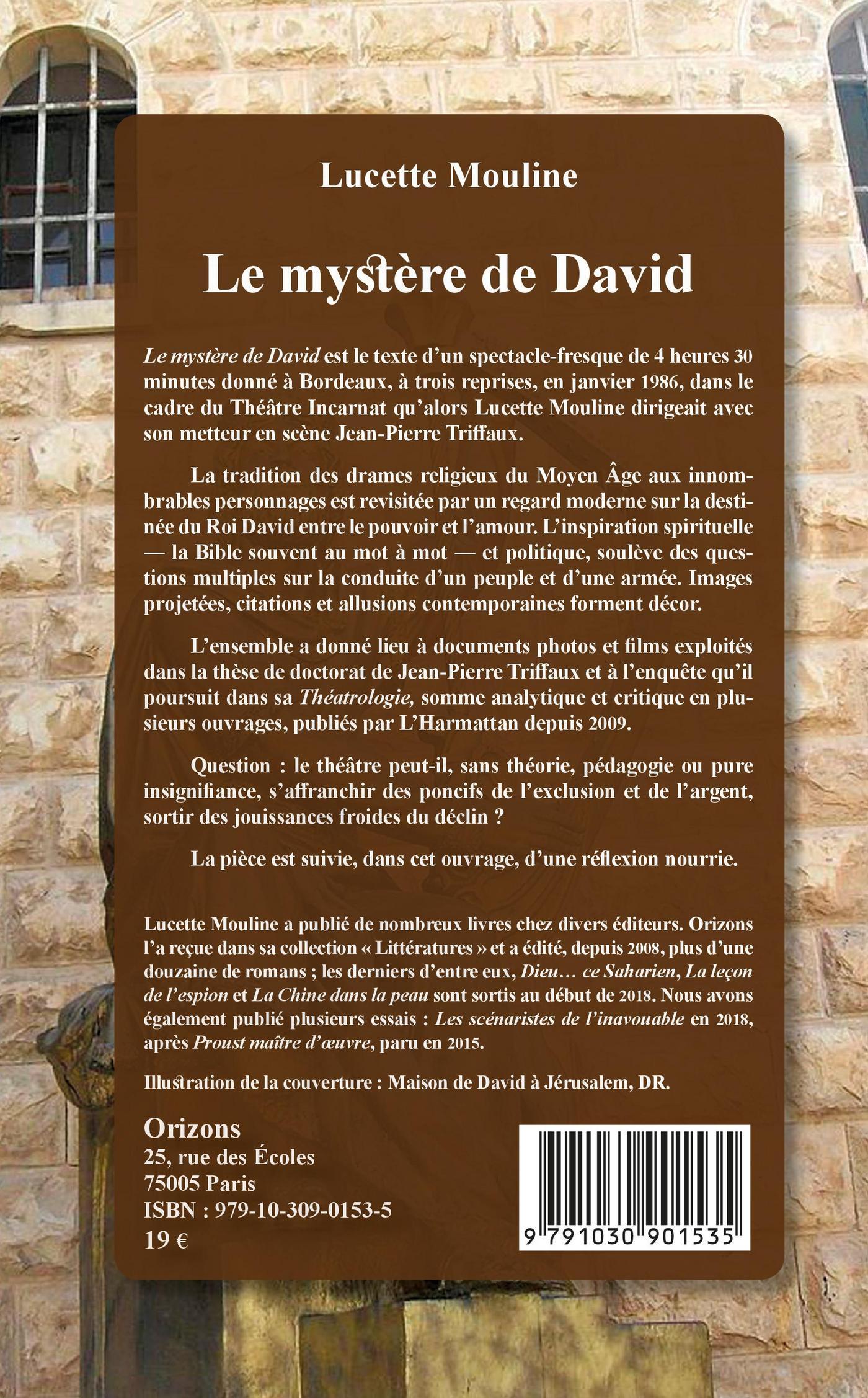 La tradition des drames religieux du Moyen Âge aux innombrables personnages est revisitée par un regard moderne sur la destinée du Roi David entre le pouvoir et l'amour. L'inspiration spirituelle ? la Bible souvent au mot à mot ? et politique, soulève des questions multiples sur la conduite d'un peuple et d'une armée. Images projetées, citations et allusions contemporaines forment décor.Question : le théâtre peut-il, sans théorie, pédagogie ou pure insignifiance, s'affranchir des poncifs de l'exclusion et de l'argent, sortir des jouissances froides du déclin ? La pièce est suivie, dans cet ouvrage, d'une réflexion nourrie.