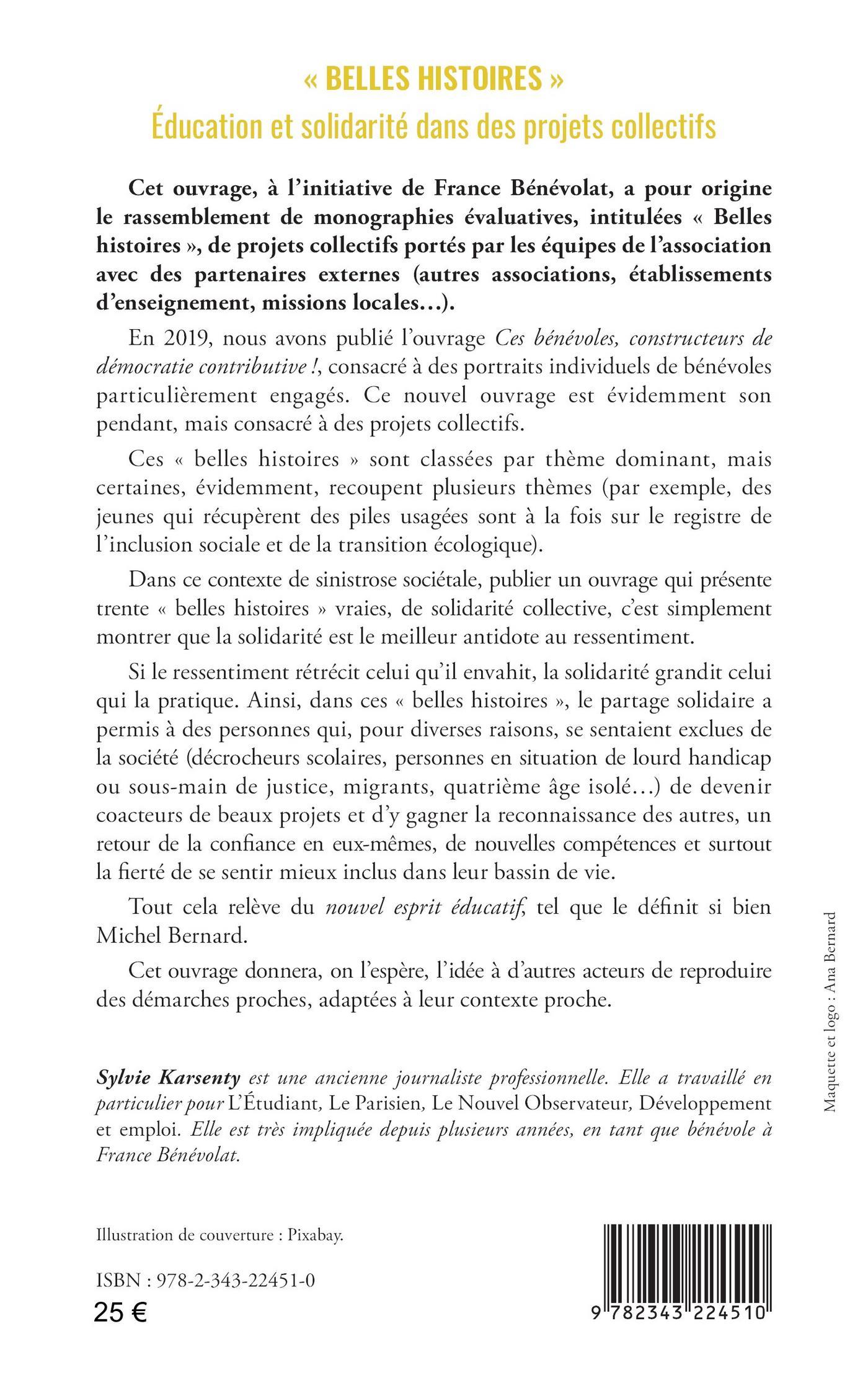 Cet ouvrage, à l’initiative de France Bénévolat, a pour origine le rassemblement de monographies évaluatives, intitulées « Belles histoires », de projets collectifs portés par les équipes de l’association avec des partenaires externes (autres associations, établissements d’enseignement, missions locales...). En 2019, nous avons publié l’ouvrage Ces bénévoles, constructeurs de démocratie contributive !, consacré à des portraits individuels de bénévoles particulièrement engagés. Ce nouvel ouvrage est évidemment son pendant, mais consacré à des projets collectifs. Ces « belles histoires » sont classées par thème dominant, mais certaines, évidemment, recoupent plusieurs thèmes (par exemple, des jeunes qui récupèrent des piles usagées sont à la fois sur le registre de l’inclusion sociale et de la transition écologique).
