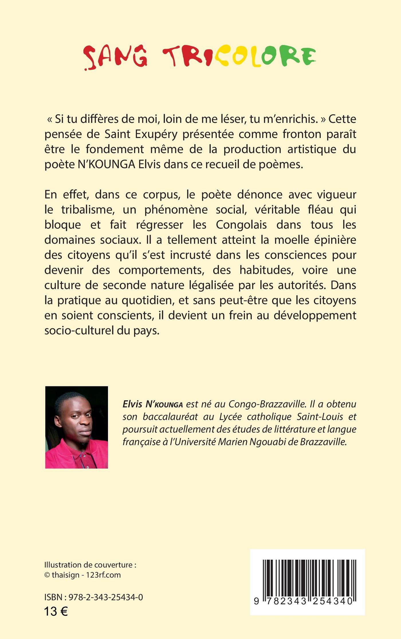 « Si tu diffères de moi, loin de me léser, tu m’enrichis. » Cette pensée de Saint Exupéry présentée comme fronton paraît être le fondement même de la production artistique du poète N’KOUNGA Elvis dans ce recueil de poèmes. En effet, dans ce corpus, le poète dénonce avec vigueur le tribalisme, un phénomène social, véritable fléau qui bloque et fait régresser les Congolais dans tous les domaines sociaux. Il a tellement atteint la moelle épinière des citoyens qu’il s’est incrusté dans les consciences pour devenir des comportements, des habitudes, voire une culture de seconde nature légalisée par les autorités. Dans la pratique au quotidien, et sans peut-être que les citoyens en soient conscients, il devient un frein au développement socio-culturel du pays.