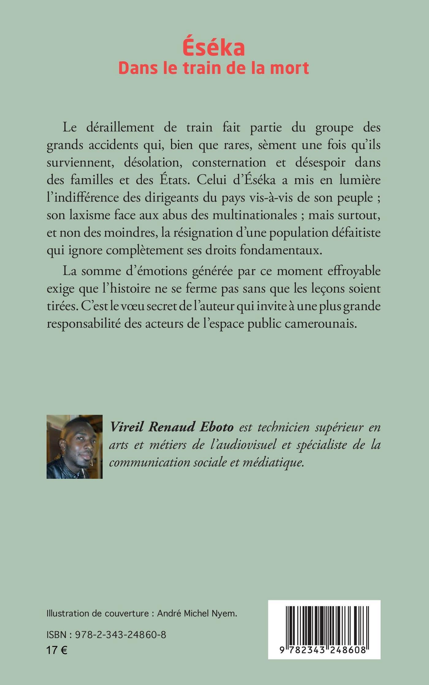 Le déraillement de train fait partie du groupe des grands accidents qui, bien que rares, sèment une fois qu’ils surviennent, désolation, consternation et désespoir dans des familles et des États. Celui d’Éséka a mis en lumière l’indifférence des dirigeants du pays vis-à-vis de son peuple ; son laxisme face aux abus des multinationales ; mais surtout, et non des moindres, la résignation d’une population défaitiste qui ignore complètement ses droits fondamentaux. La somme d’émotions générée par ce moment effroyable exige que l’histoire ne se ferme pas sans que les leçons soient tirées. C’est le voeu de l’auteur qui invite à une plus grande responsabilité des acteurs de l’espace public camerounais.