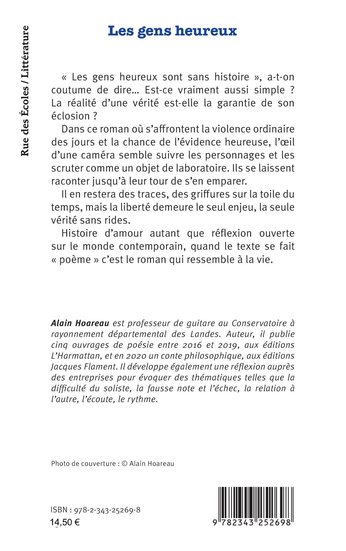 « Les gens heureux sont sans histoire », a-t-on coutume de dire... Est-ce vraiment aussi simple ? La réalité d’une vérité est-elle la garantie de son éclosion ? Dans ce roman où s’affrontent la violence ordinaire des jours et la chance de l’évidence heureuse, l’oeil d’une caméra semble suivre les personnages et les scruter comme un objet de laboratoire. Ils se laissent raconter jusqu’à leur tour de s’en emparer. Il en restera des traces mais la liberté demeure le seul enjeu. Histoire d’amour autant que réflexion ouverte sur le monde contemporain, quand le texte se fait « poème » c’est le roman qui ressemble à la vie.